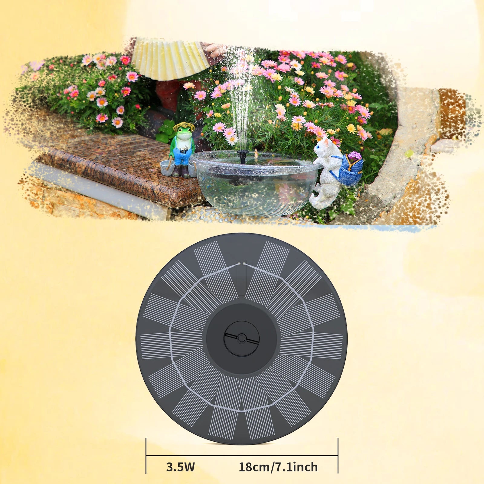 1.5w/2.5w/3.5w Solar Bird Bath Fountain Pump,with 6 Nozzles Solar Powered Water Fountain for Garden Pool, Aquarium and Outdoor