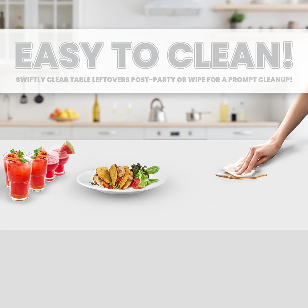 PERFECT FIT: 54" x 108" - covers any table up to 8 ft. You can also cut it to fit a smaller table. Budget Friendly. Inspires a clean sense of style at any event or meal you’re hosting with these elegant tablecloths disposable.