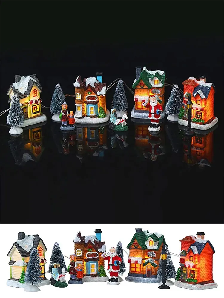 2. Lightweight and Portable: Crafted from resin, ABS plastic, and electronic components, the Christmas winter village houses are lightweight and easy to move. for adding a festive touch to any space without hassle.