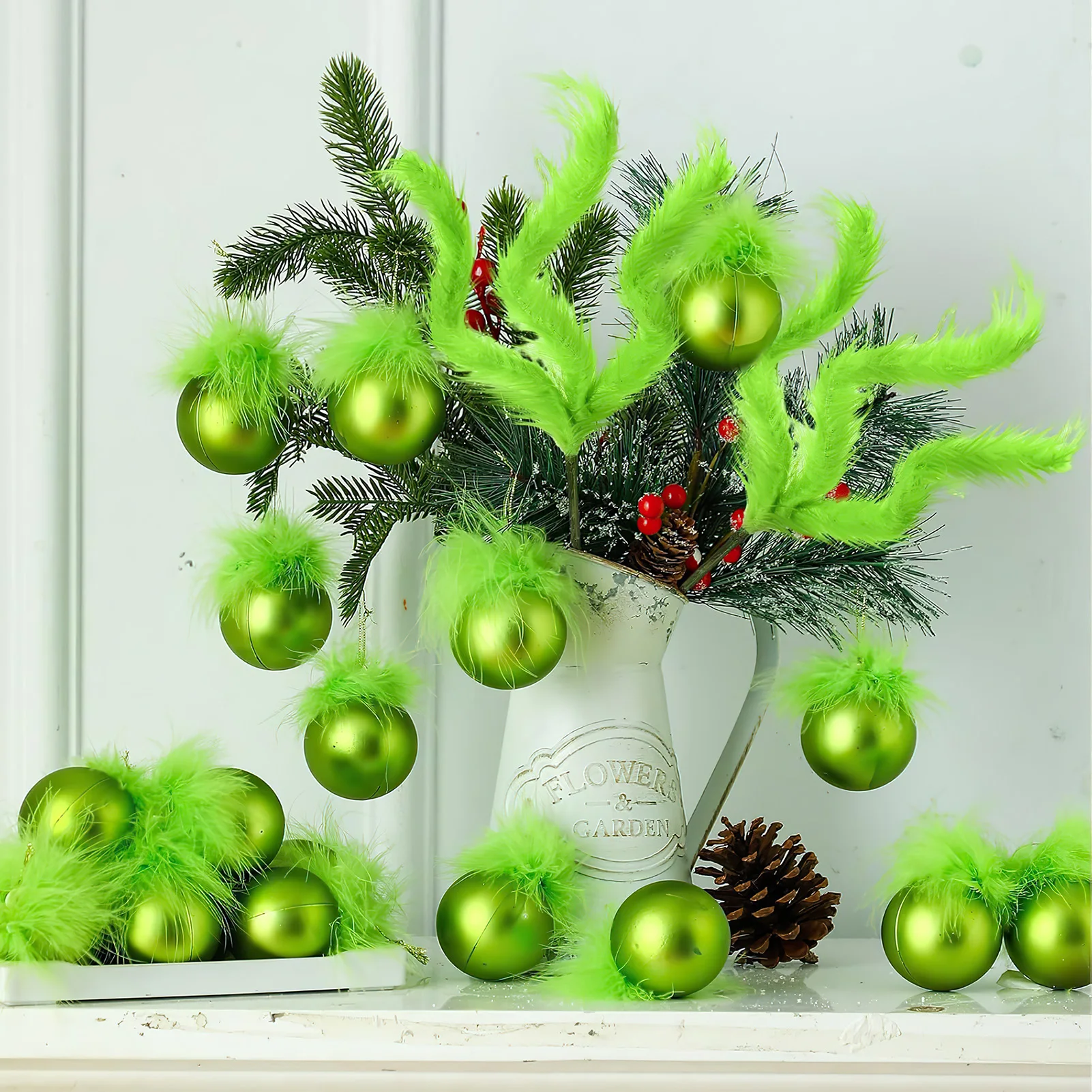 Party Arrangement Plastic Balls With Plush: These decorative balls combine plastic and plush materials for a soft yet stylish look, perfect for enhancing holiday parties, weddings, or Christmas tree displays.
