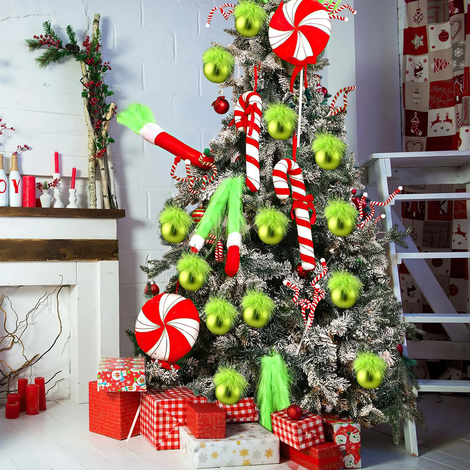 12pcs Christmas Tree Decorations Fluffy Christmas Ornaments Set for Holiday Party Decor Xmas Home Decorations 16PC