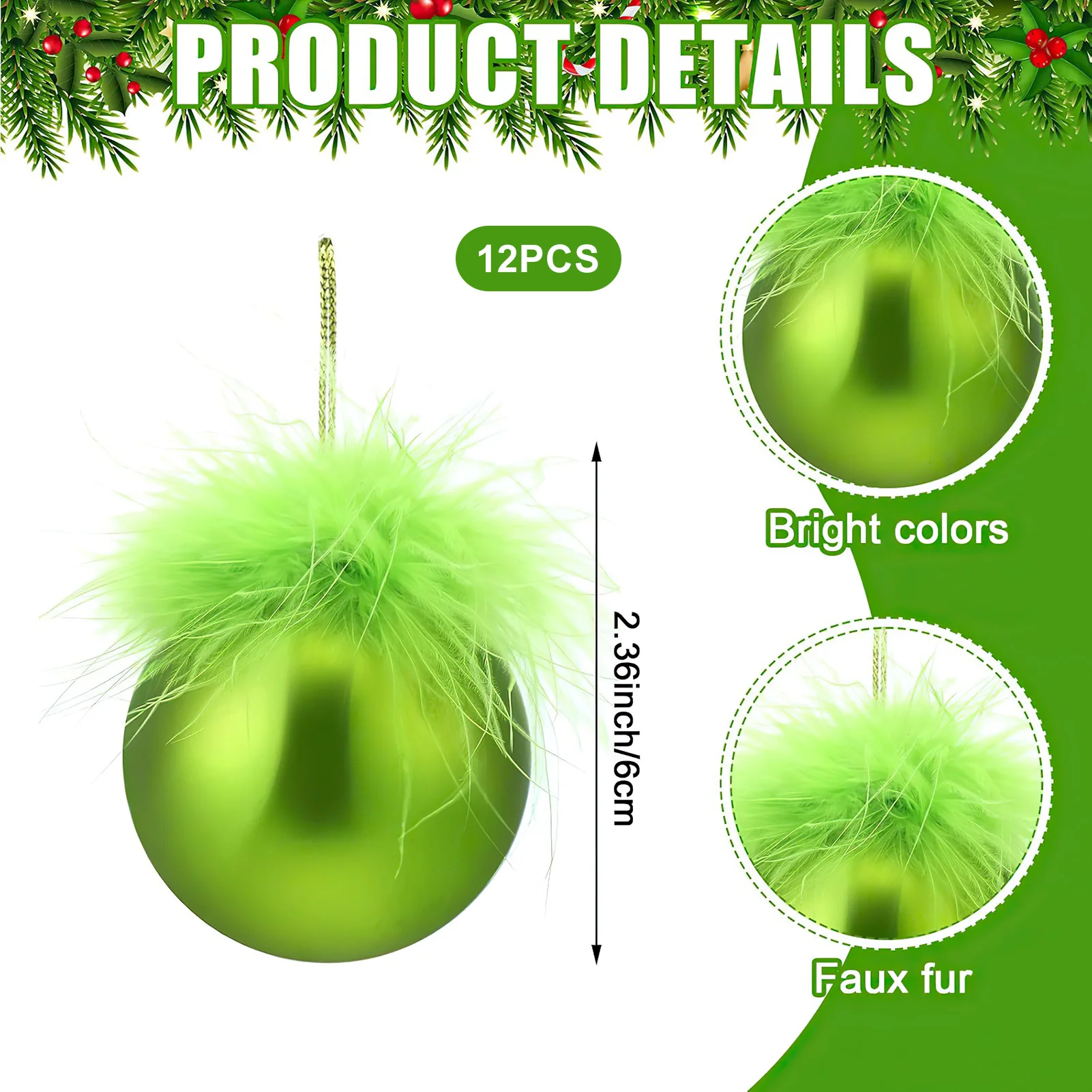 Christmas Tree Ball Ornaments: These elegant round ornaments are perfect for enhancing your Christmas atmosphere, featuring a delicate design that adds a festive touch to any tree, suitable for anniversaries and holidays.