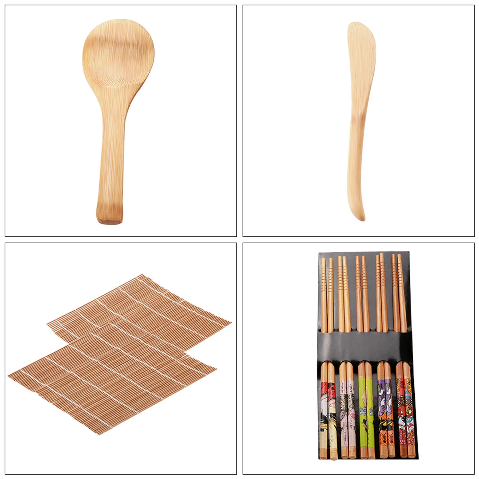 Description:If you are confused about how to make sushi easily and looking for an excellent sushi kit, then our kit must be your best choice. The sushi set are made of bamboo, natural and healthy with no-toxic.This sushi marking set include 1 spoon, 5 pairs of chopsticks, 1 sushi blade and 1 sushi curtain, enough for your daily use.