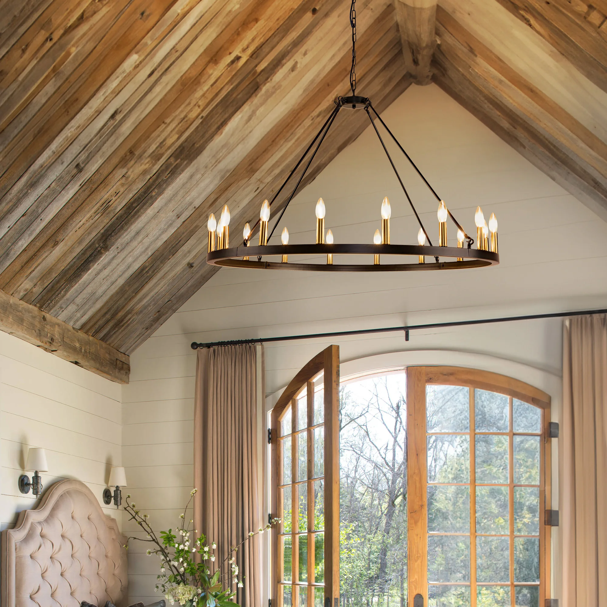 16-Light Wagon Wheel Chandelier Round Matte 43 inch Modern Rustic Farmhouse Pendant Light Large Chandeliers for Living Room