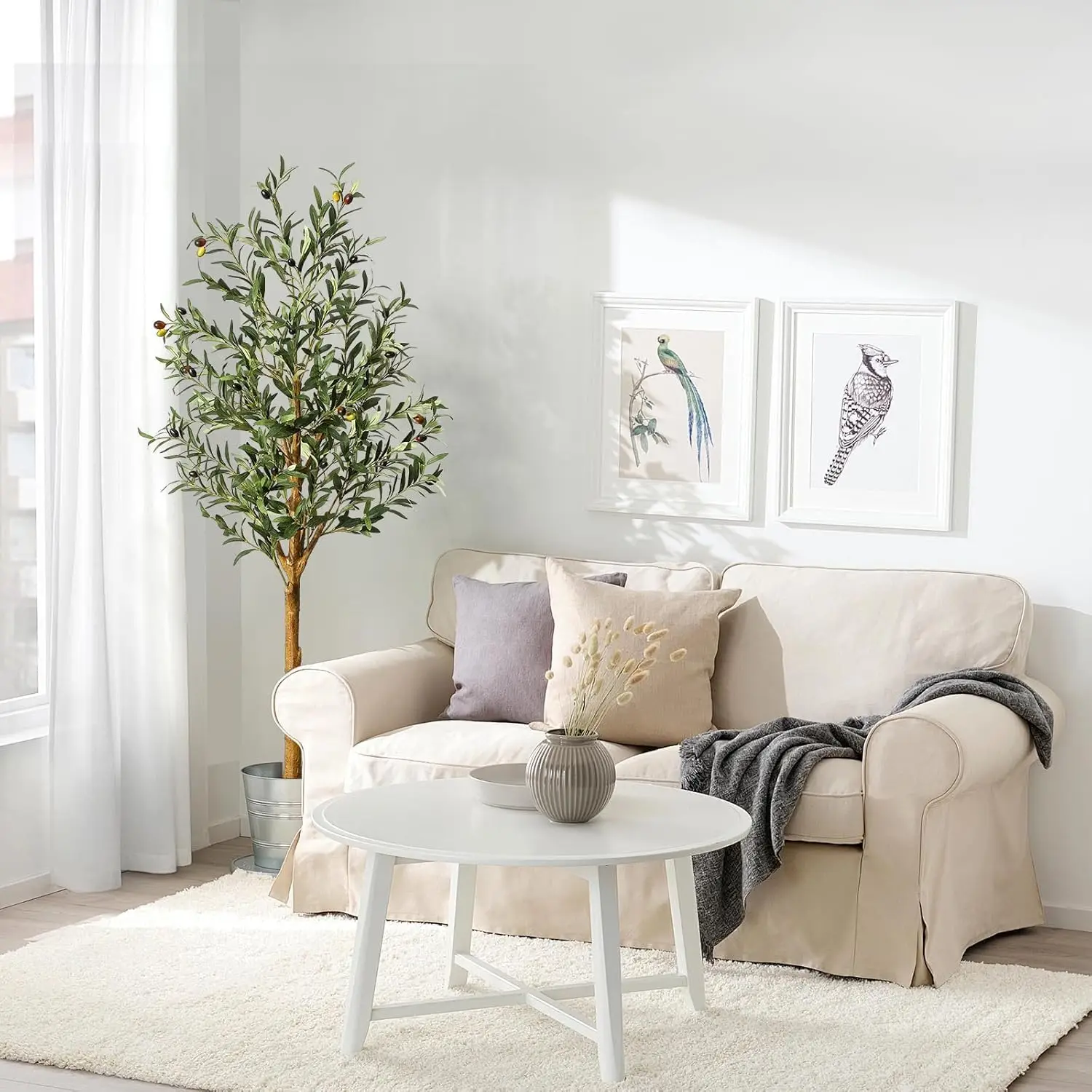 【Realistic Olive Tree】This 4/5/6Ft artificial olive tree features a lifelike PE trunk, giving it a sculptural appearance, complemented by lifelike leaves and fruits for an artistic and authentic look. The single trunk splits into several branches, adorned with dozens of olives made of rubber fabric. The clear texture of the olive leaves and vibrant colors make this faux tree an ideal home and office decoration, creating a tropical atmosphere in your living environment.