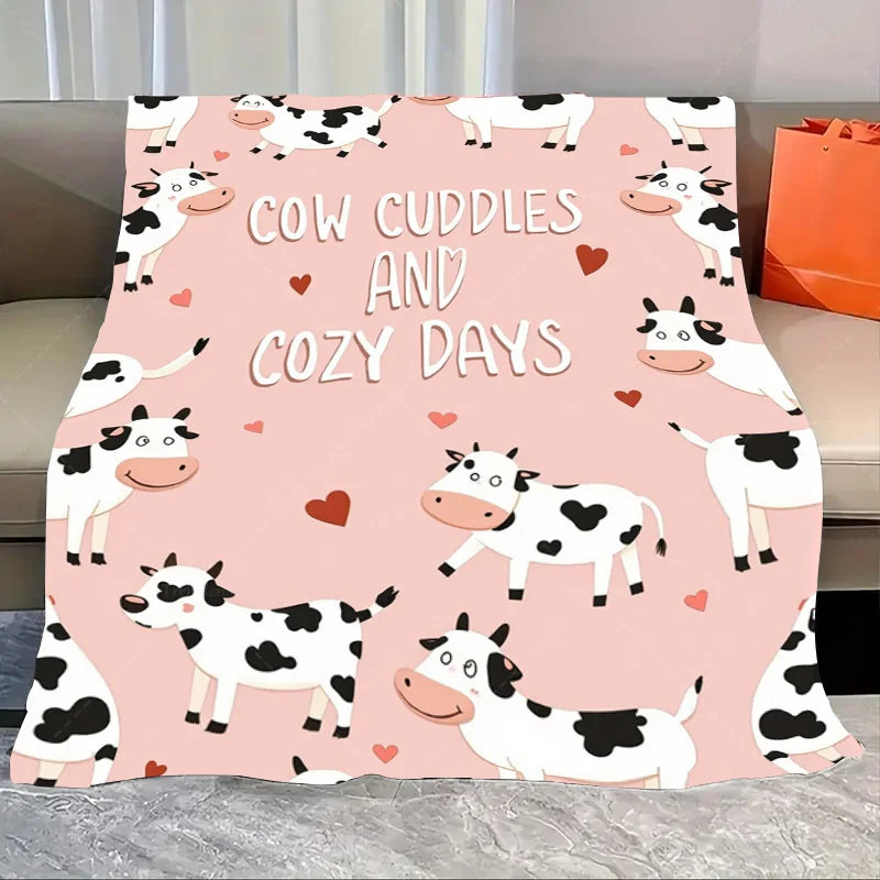 1pc Flannel Blanket Autumn Highland Cattle Blanket - Cozy Fall Farmhouse Style Throw