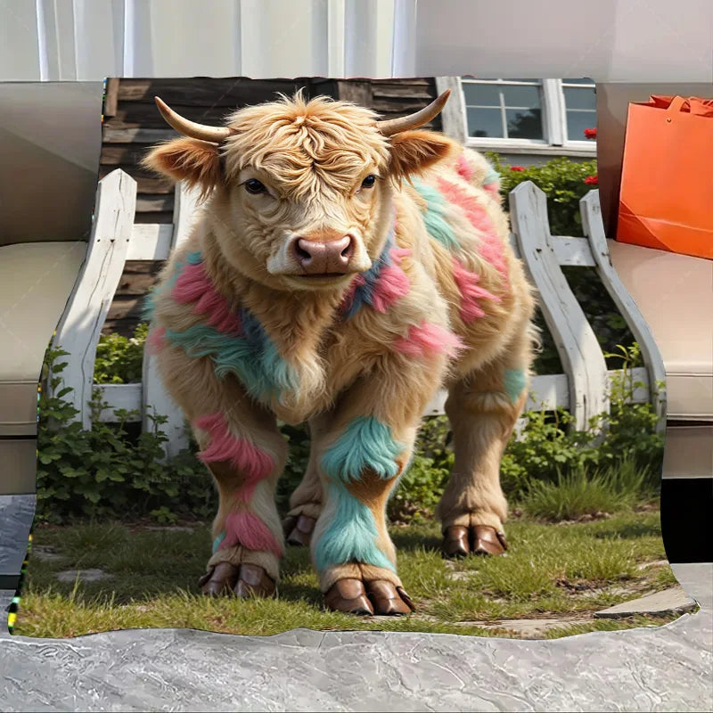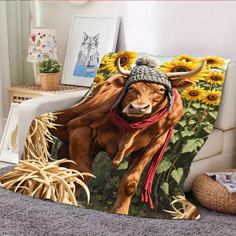 1pc Flannel Blanket Cozy Farmhouse Cow Blanket with Sunflowers and Scarf Design
