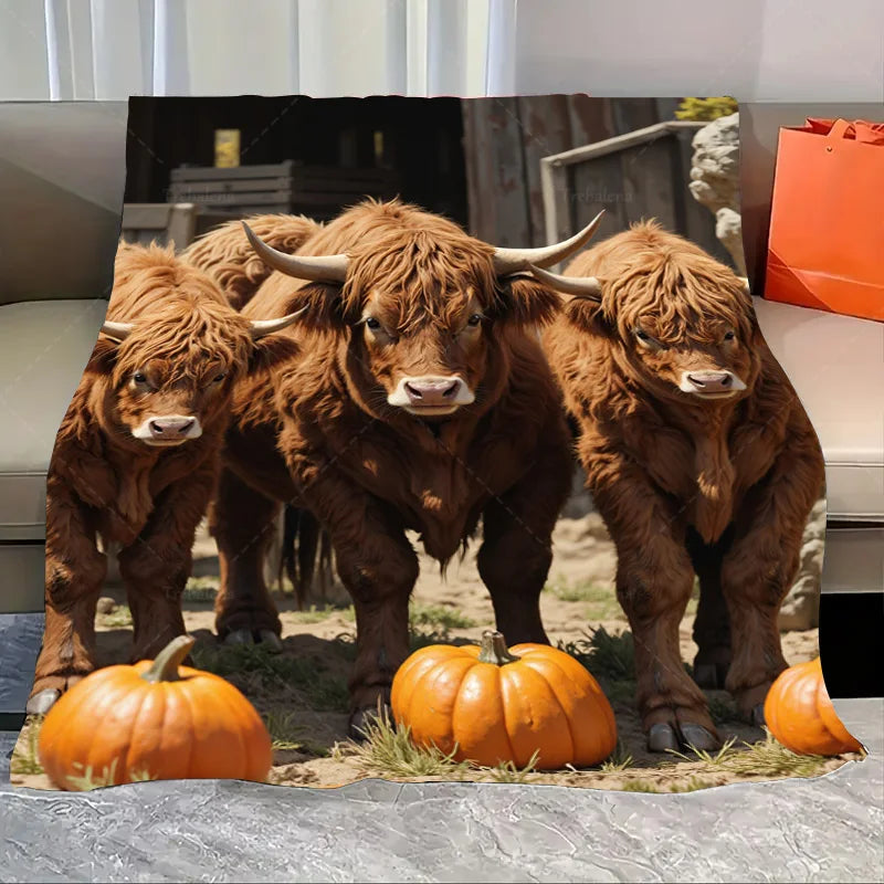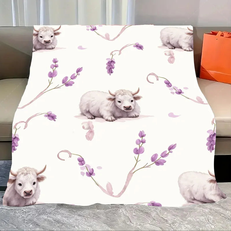 1pc Flannel Blanket Rustic Farmhouse Bull Blanket - Cozy Pastoral Scene Throw for Home Decor