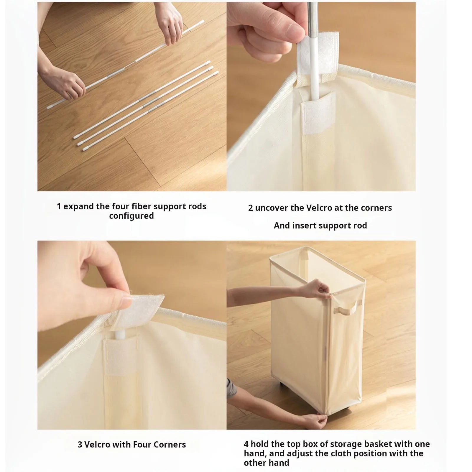 Its narrow and large-capacity design fits perfectly in tight spaces, keeping your dirty clothes neatly stored away. The foldable feature ensures it doesn't take up unnecessary space when not in use.