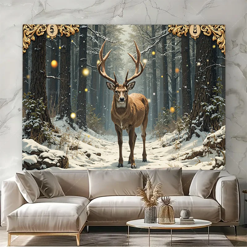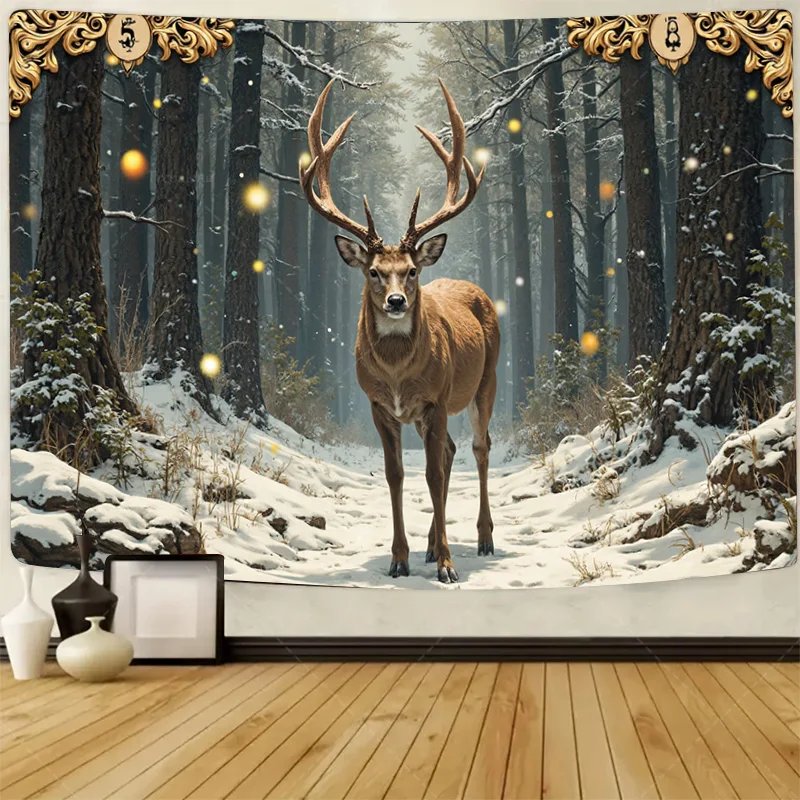 1pc Wall Tapestry "Enchanted Forest Deer Tapestry - Winter Wonderland Wall Art"