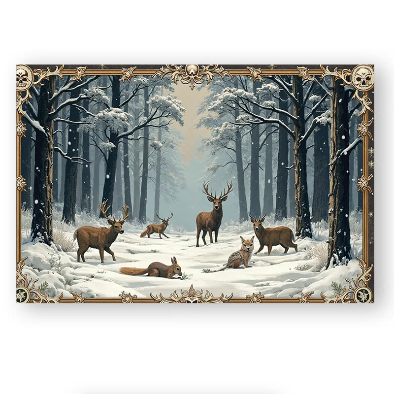 1pc Wall Tapestry "Enchanted Winter Forest Tapestry with Deer and Fox in Snowy Scene"