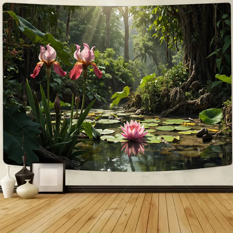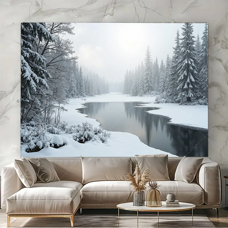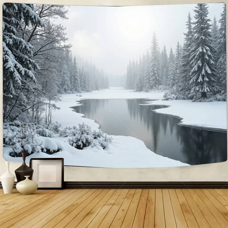 1pc Wall Tapestry "Winter Wonderland Tapestry - Snowy Forest & River Scene"