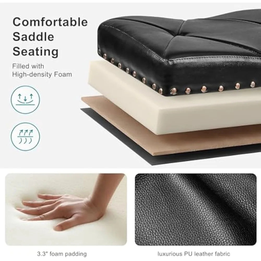 - Solid Structure: This saddle stool features a sturdy metal frame and rectangular seat for stability and durability. The leather cushion is easy to clean with a damp cloth. This breakfast stool is ideal for everyday use. It remains resistant to hydrolysis and cracking, ensuring lasting reliability.