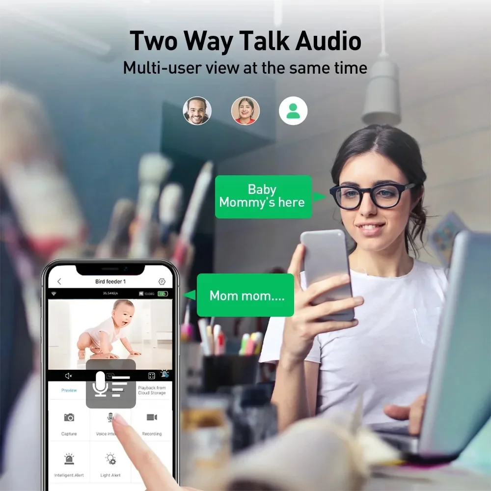 * Support 2-way audio communication, support TF-card Storage