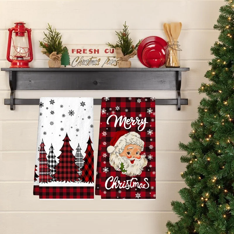 2pcs Christmas Kitchen Towels Merry Christmas Party Decoration 2025 Xmas Santa Claus Dish Towel Navidad Natal New Year Gift 2026