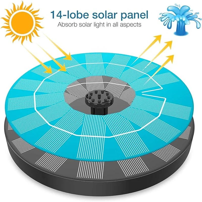 3.5W Solar Fountain, Solar Fountain with 6 Nozzles, Solar Fountain for Birdbaths, Garden Decoration, Swimming Pools, Ponds, Fish