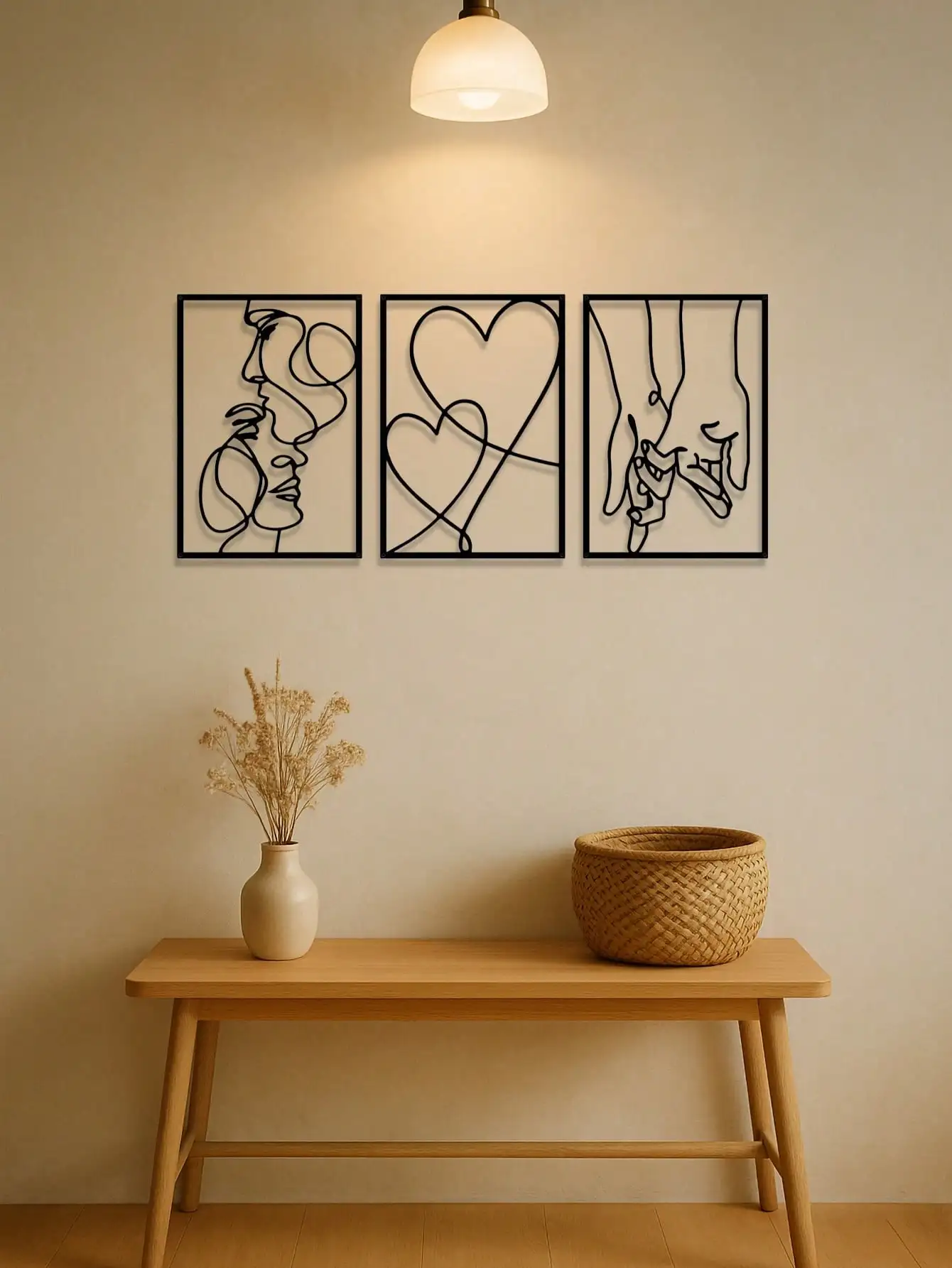 "3-Piece Romantic Metal Wall Art Set – Minimalist Couple Silhouette & Love Drawings | Decor for Room| Ideal Couple Gifts"