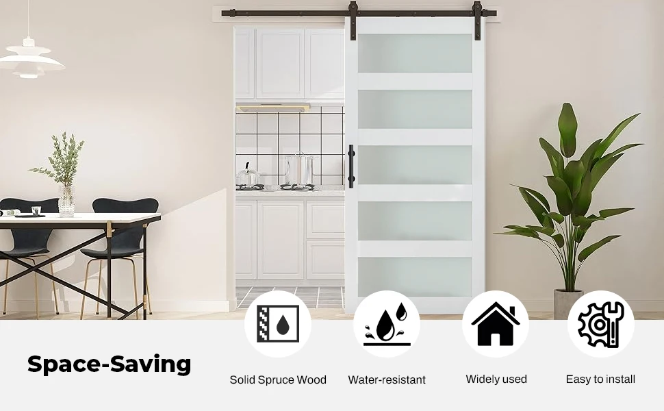 Perfect for small spaces! This sliding barn door with hardware kit helps you save space compared to traditional swing doors. Great for closets, bathrooms, bedrooms, and more. (Not suitable for commercial use.)