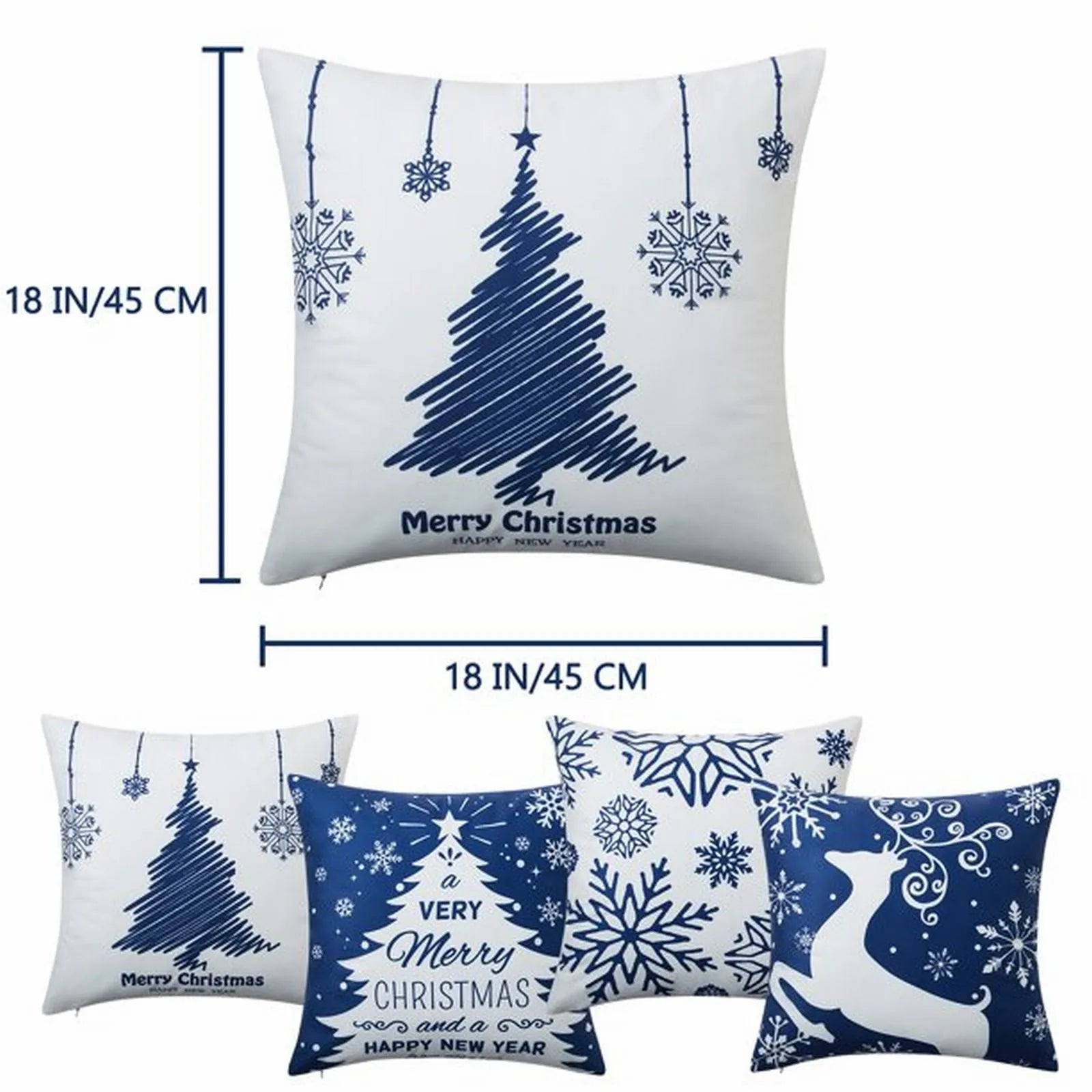 blue 4Pcs Square Decorative Pillow Covers 18*18inch Farmhouse Christmas Decor Pillowcase Winter Holiday Decorations Throw Cushion Case Couch