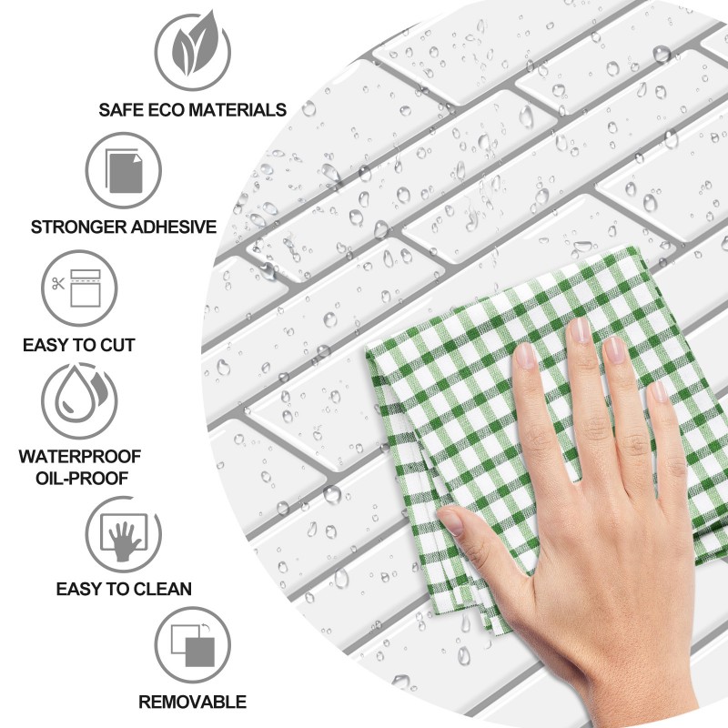 - Heat & Water Resistant: Peel and stick wall tile is made of PU glue and PET backing paper, safe and eco friendly, durable, waterproof, moisture proof, oil proof, easy to clean, heat resistant, withstands temperatures from 30°C to 80°C, ideal choice for kitchens and bathrooms, long lasting, won't turn yellow or crack over time.