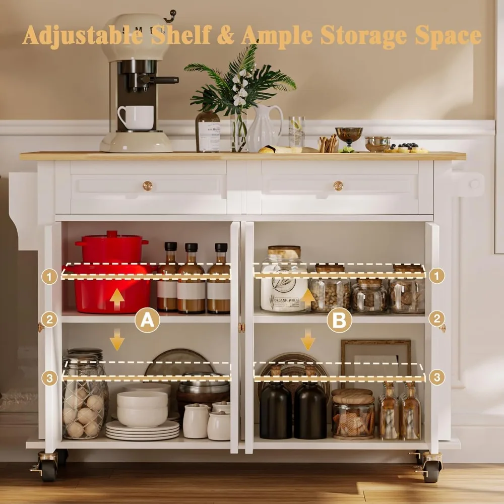51.2'' Rolling Kitchen Island with Drop Leaf - Kitchen Carts on Wheels with Storage, Towel Rack, Drawers Island Table for Kitche