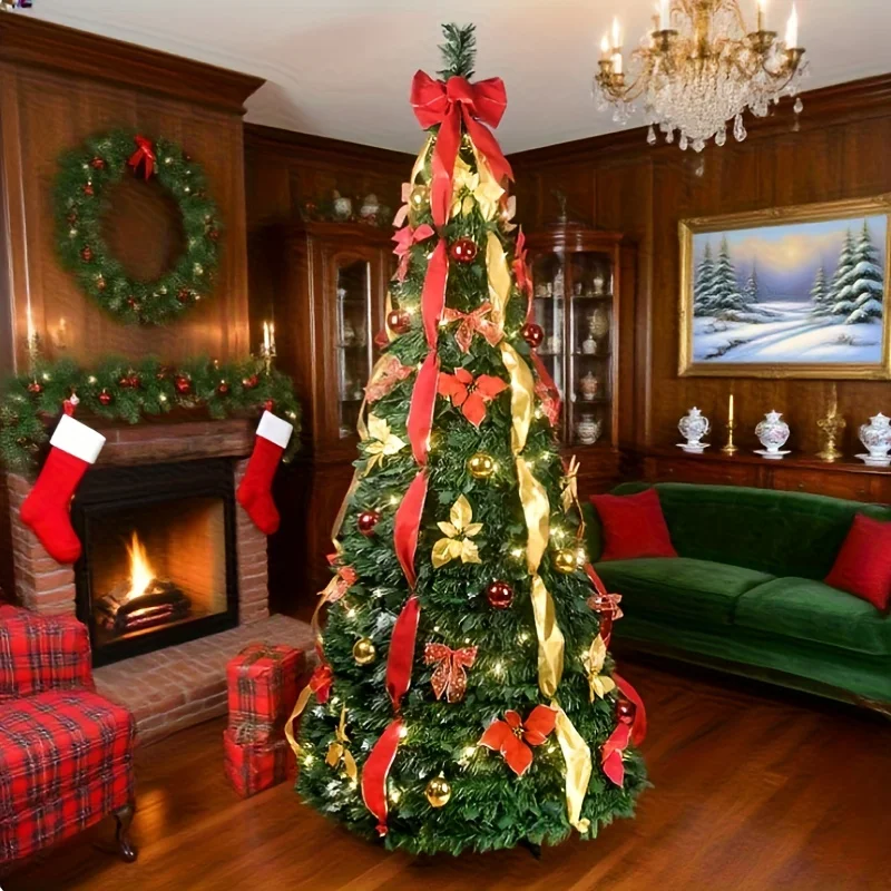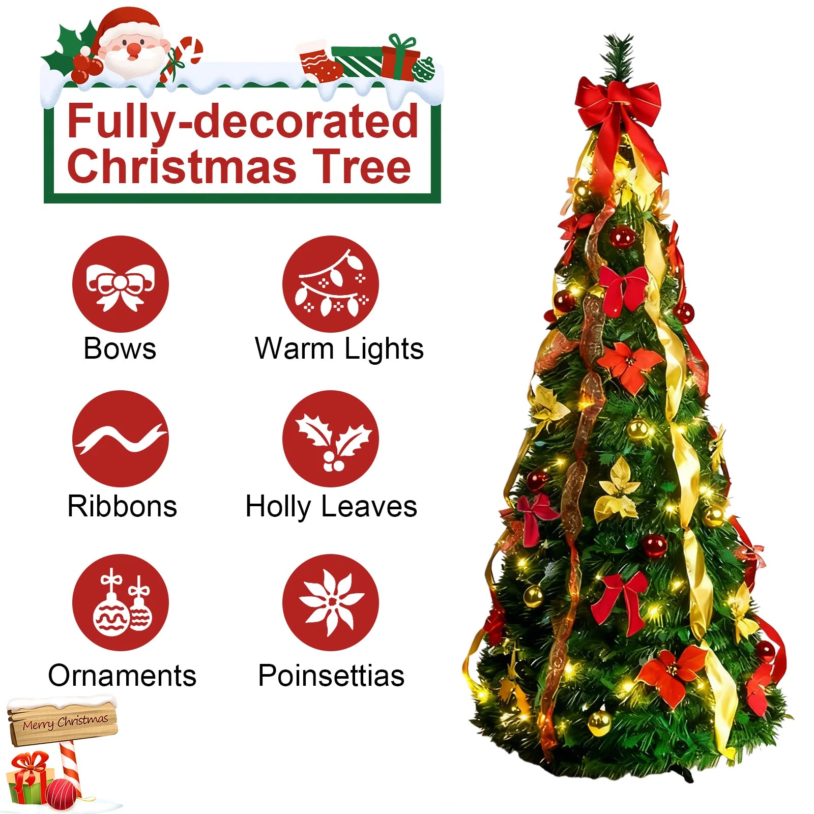 6-Foot Quick-Assembly Realistic Christmas Tree Sturdy Plastic/Metal Base - Easy to Set Up for Home, Office, And Party Use.