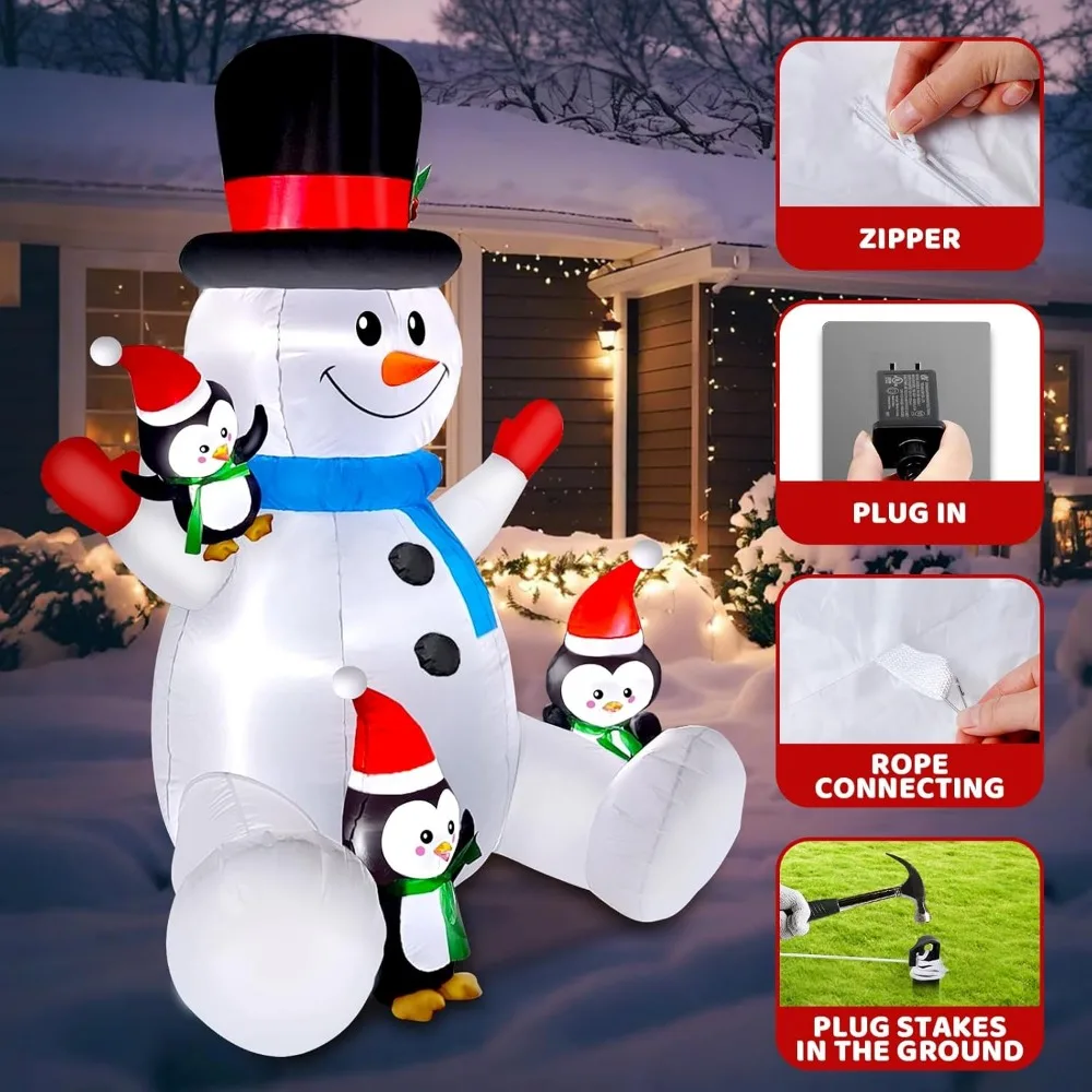 - 【Snowman & Penguin Inflatable】: Create a festive winter wonderland with our 5 FT snowman inflatable and penguin inflatable Christmas. The inflatable snowman size standing at an impressive height of 6.13ft, the front and back size of 3.7ft and the left and right size of 4.7ft make this snowman a standout outdoor Christmas decoration.