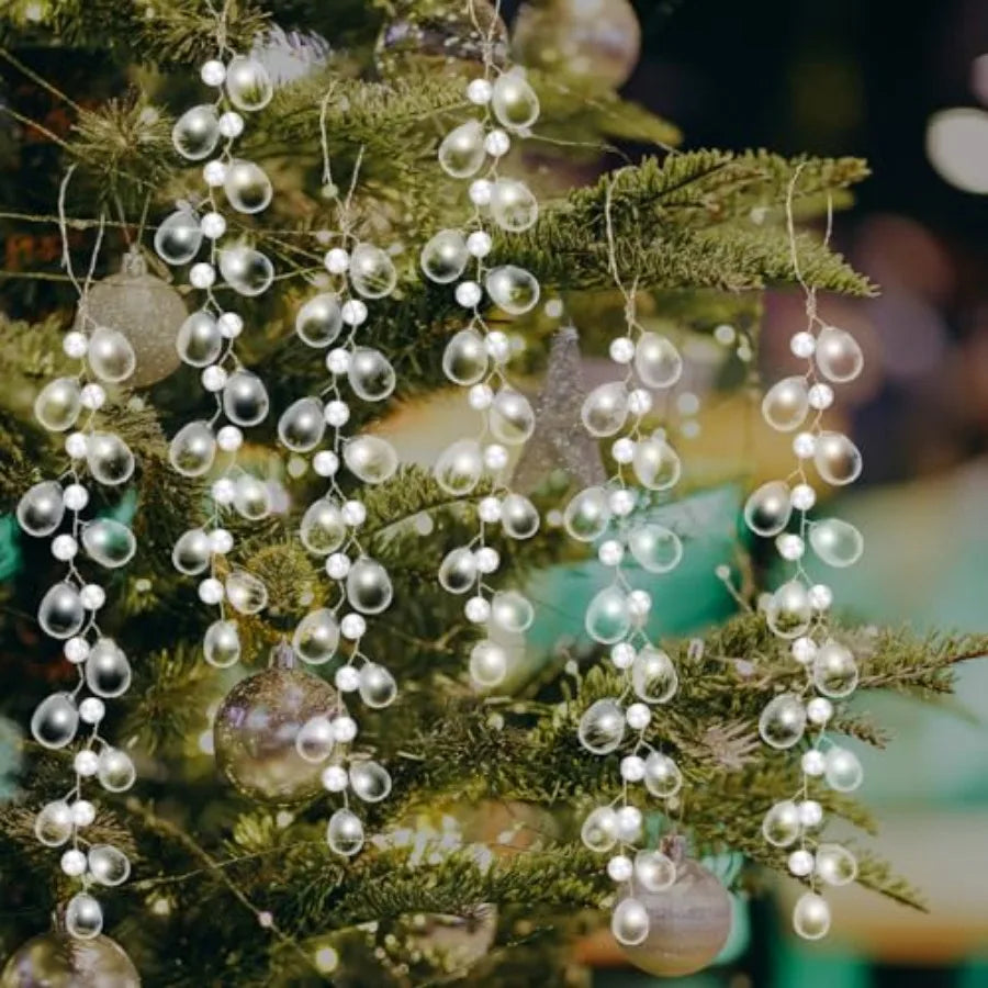 6 Packs Christmas Clear Garland Hanging Ornaments White Pearl Crystal Teardrop Acrylic Beads Xmas Tree Decorations Clear Chande