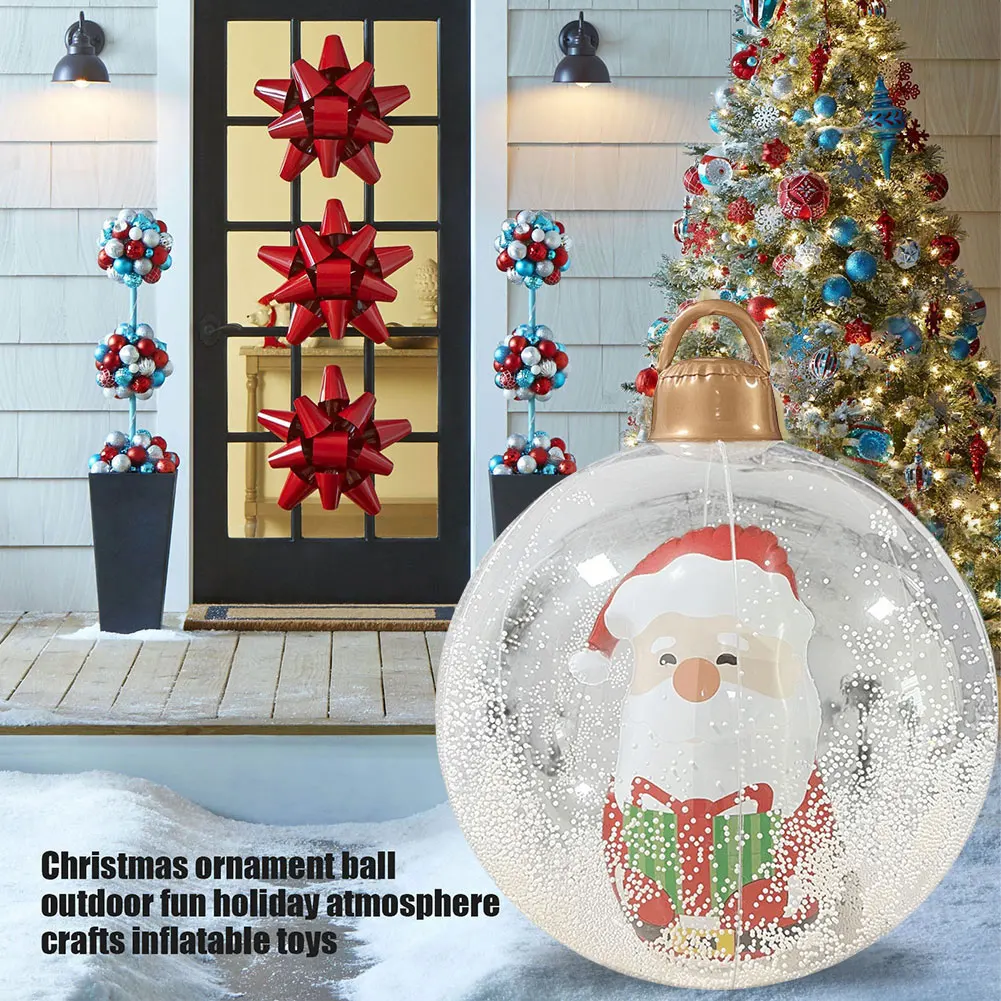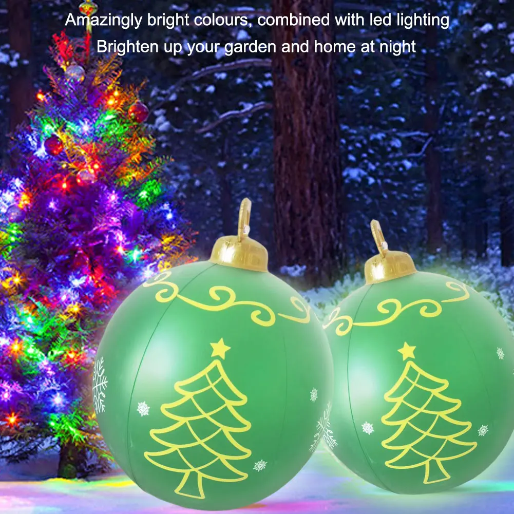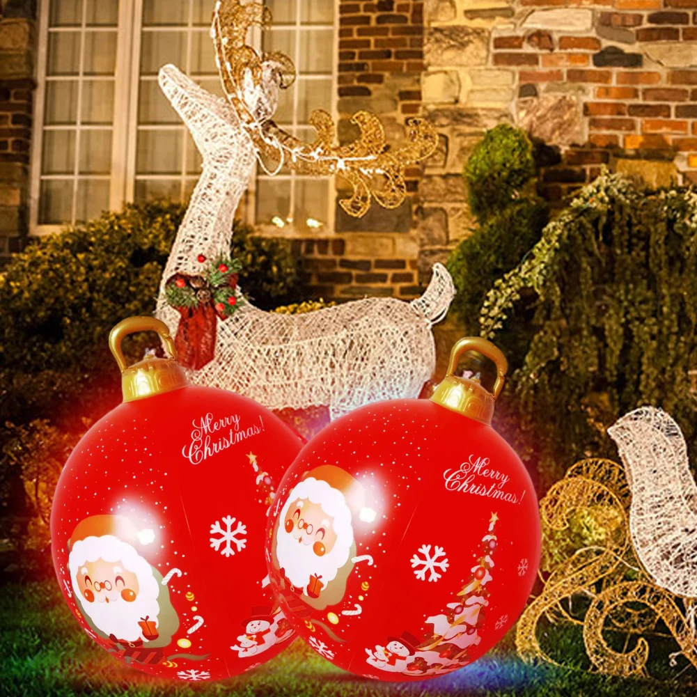 60cm Christmas Ball Ornament PVC Giant Inflatable Decorative Balls Xmas LED Light Decoration Balloon With Remote Control & Pump