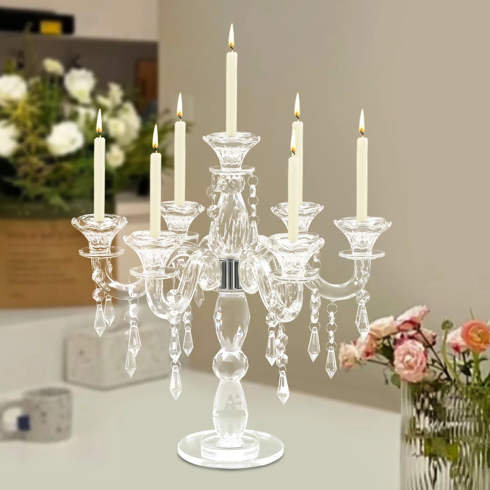 7-Arm Elegant Crystal Candelabra – Sturdy Candle Holder with Stable Base, Ideal for Weddings, Dinners & Home Decor