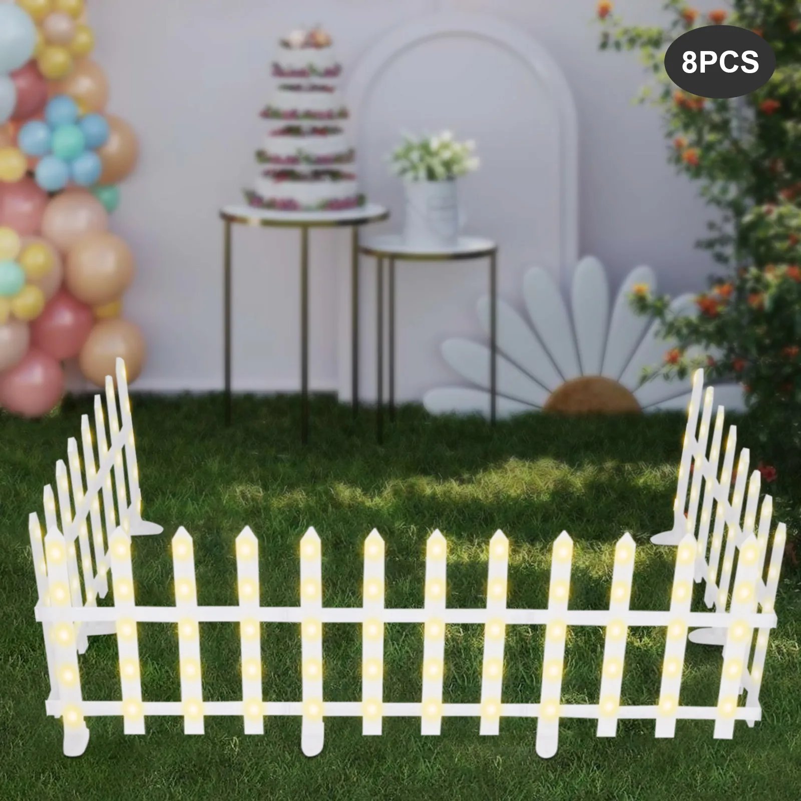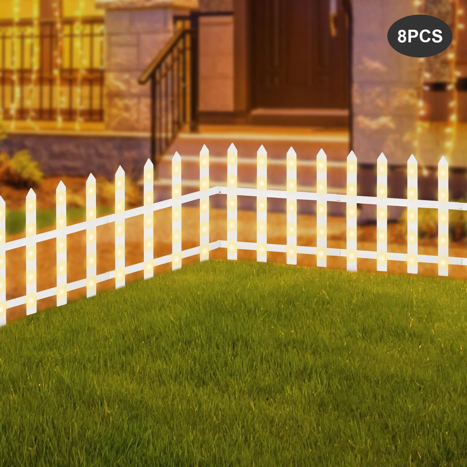 8 PCS Christmas PP Decorations Light,White Christmas Fence Warm Lights Placement Each Panel 38cm for Decoration Christmas Tree