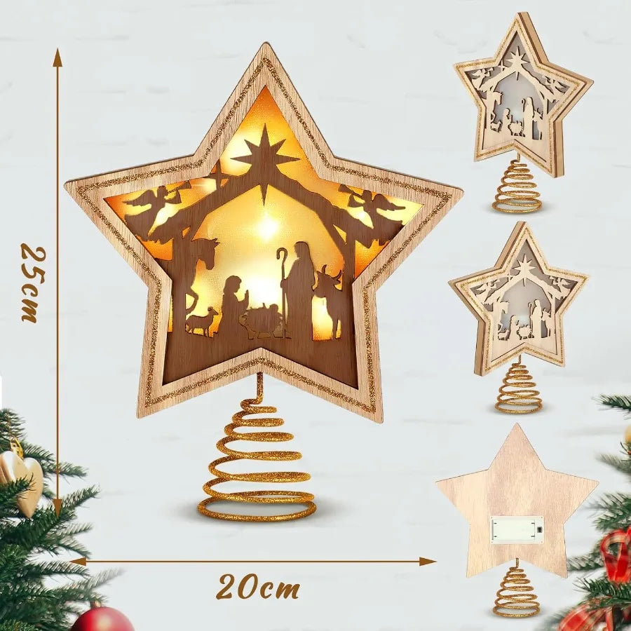 9.2 x 7.8 Inch Nativity Christmas Tree Topper Star with LED Light for Religious Christian Party Decoration Ideal for Tabletop D
