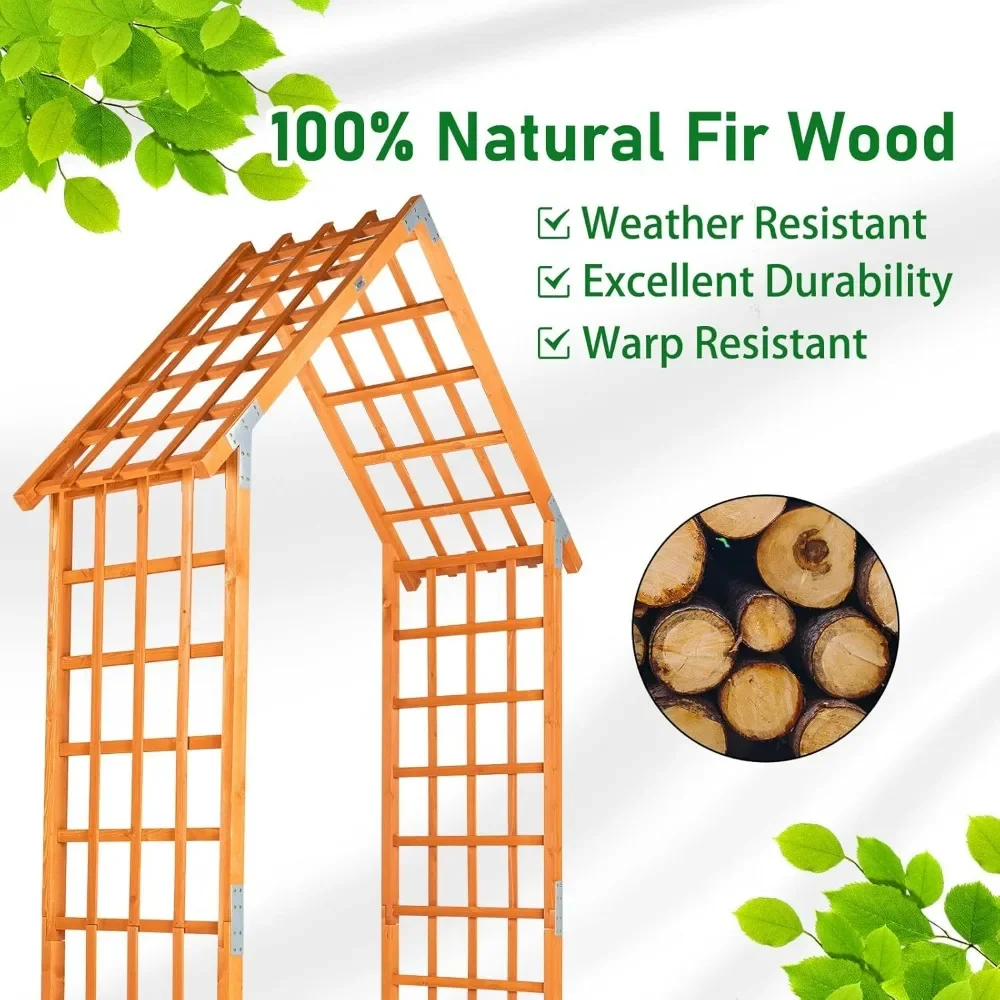 Solid Material -This Arbor is made by solid wood. It's sturdy and solid for long time and durable usage.Moisture Resistant,Maintain beauty and performance. Multi-purpose- It can be used for anniversaries or Outdoor weddings,Flowers and plants can be allowed to climb,used for indoor or outdoor such as garden parties、 distinctive entrance for your greenhouse. Easy to assemble- Each accessory has a detailed code on the instruction manual,No additional tools are required to assemble the product save your energy and time,weather resistant and easy to maintain. Popular Arbor Design-Bow-Shaped Header And Well-Scaled Double, Fastened Lattice Side Panels.Adding Grace And Prominence To Any Outdoor Venue With The Arbor Features Squared Lattice Side Panels. CLIMBING PLANTS - These Garden Arches Are Designed To Accommodate And Support All Types Of Climbing Plants And Vegetables.