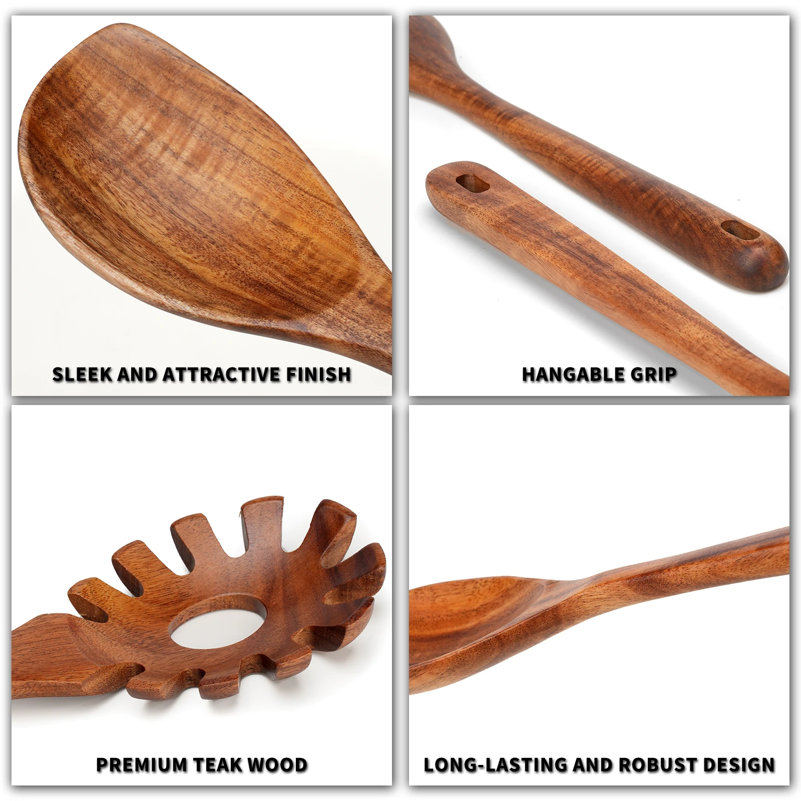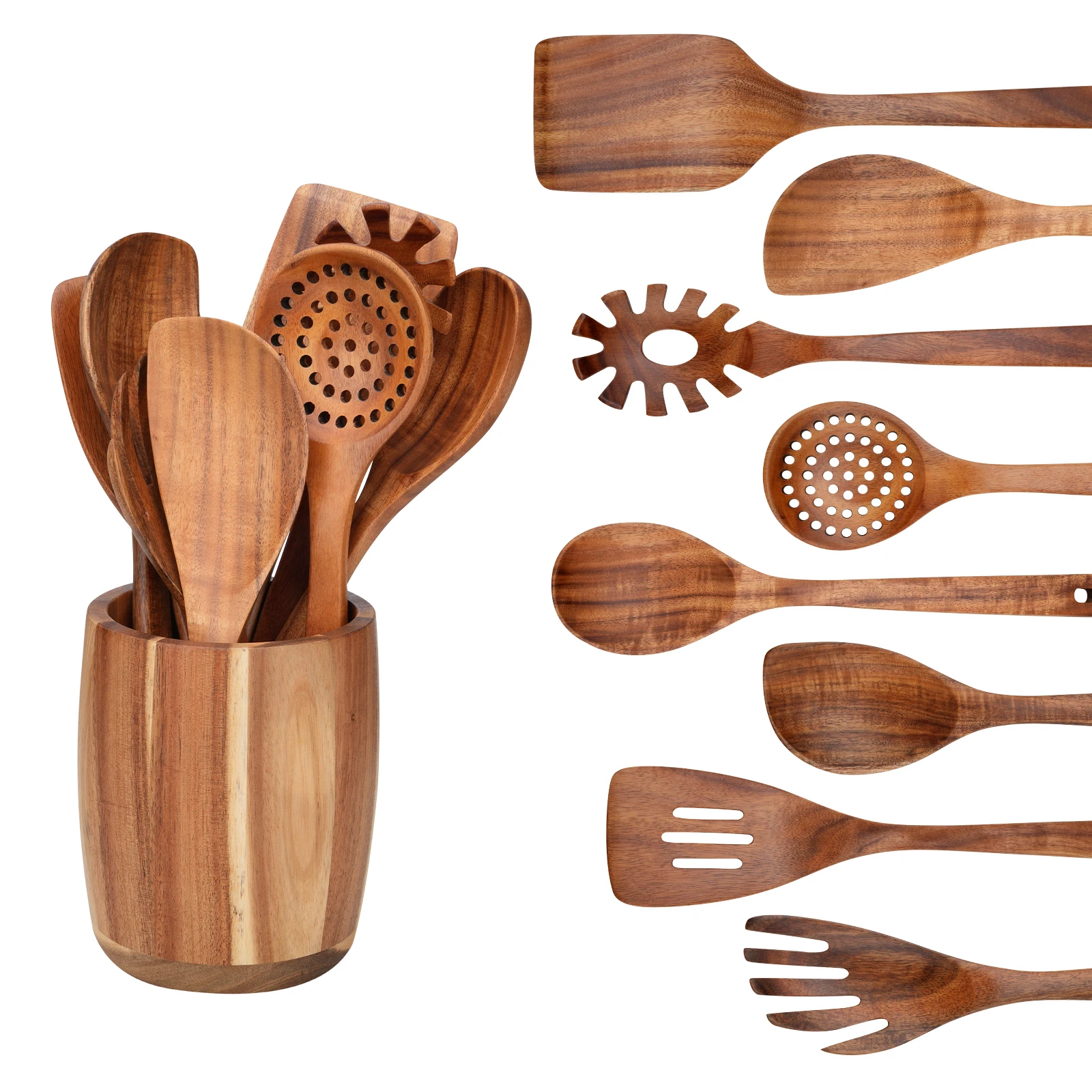 9PCS Kitchen Utensils Set - Wooden Spoons for Cooking- Wooden Spoons, Spatula Set, Slotted Spoon - Handmade Wooden Spoon Set