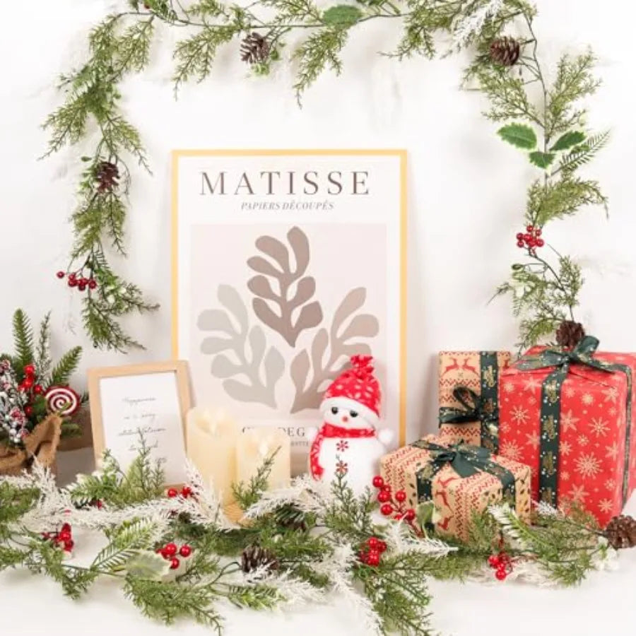 Artificial Christmas Garlands 2 PCS5.9FT Faux Hanging Winter Vines Red Berries Holly Leaves with Pine Cones Pine Needle Cedar G