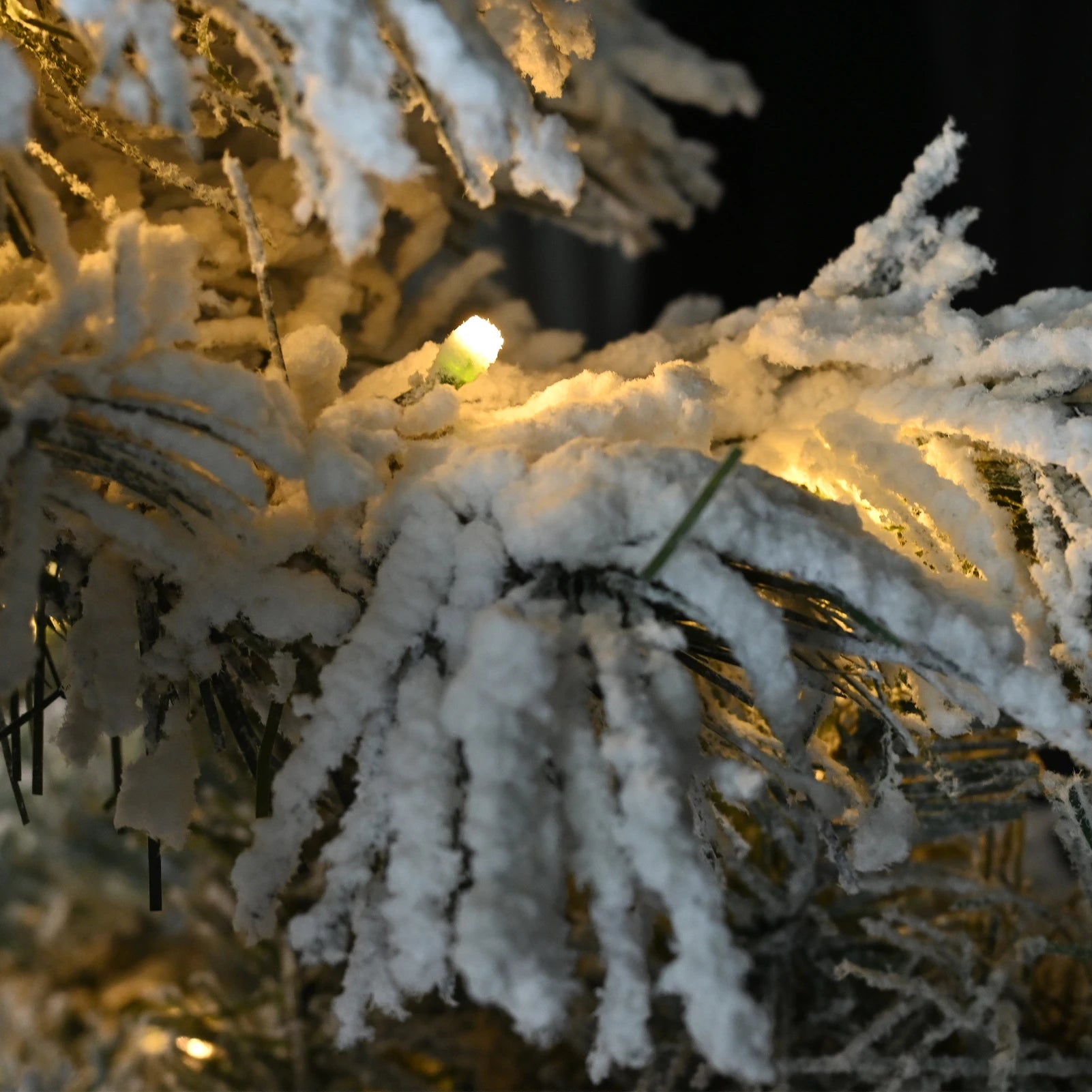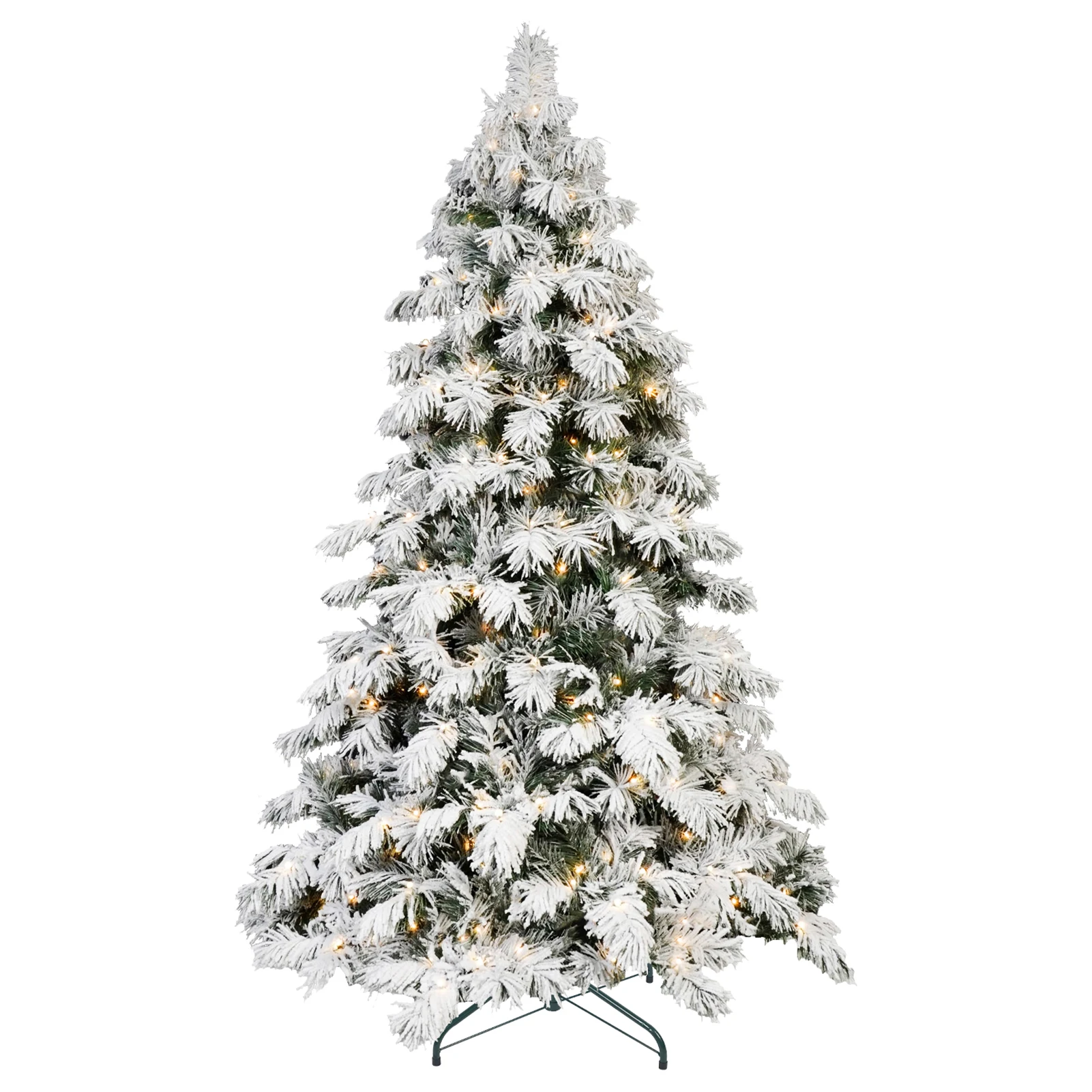 Artificial Flocking Christmas Tree with Warm White Ball Lights PVC Holiday Decoration Xmas Tree with Sturdy Metal Stand Base