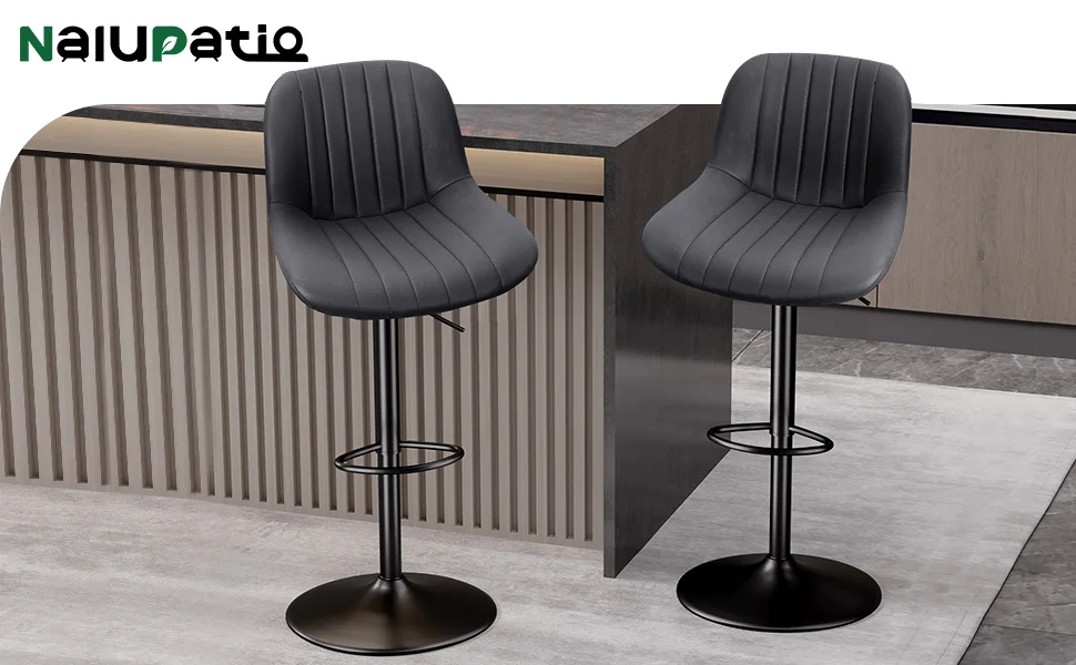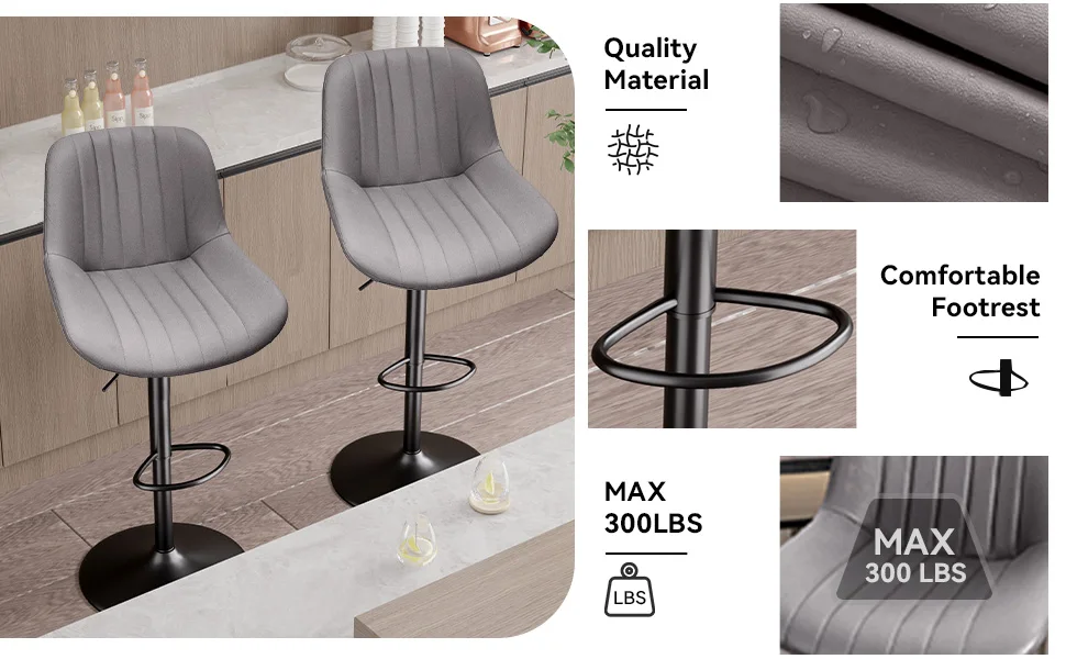 Bar Stool 2-Piece Set, Adjustable Modern Rotating Bar Stool with Backrest, Counter High Performance Fabric Island Chair