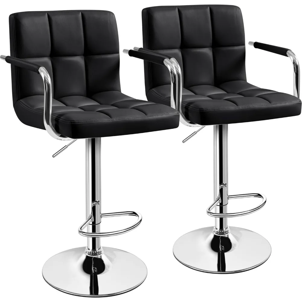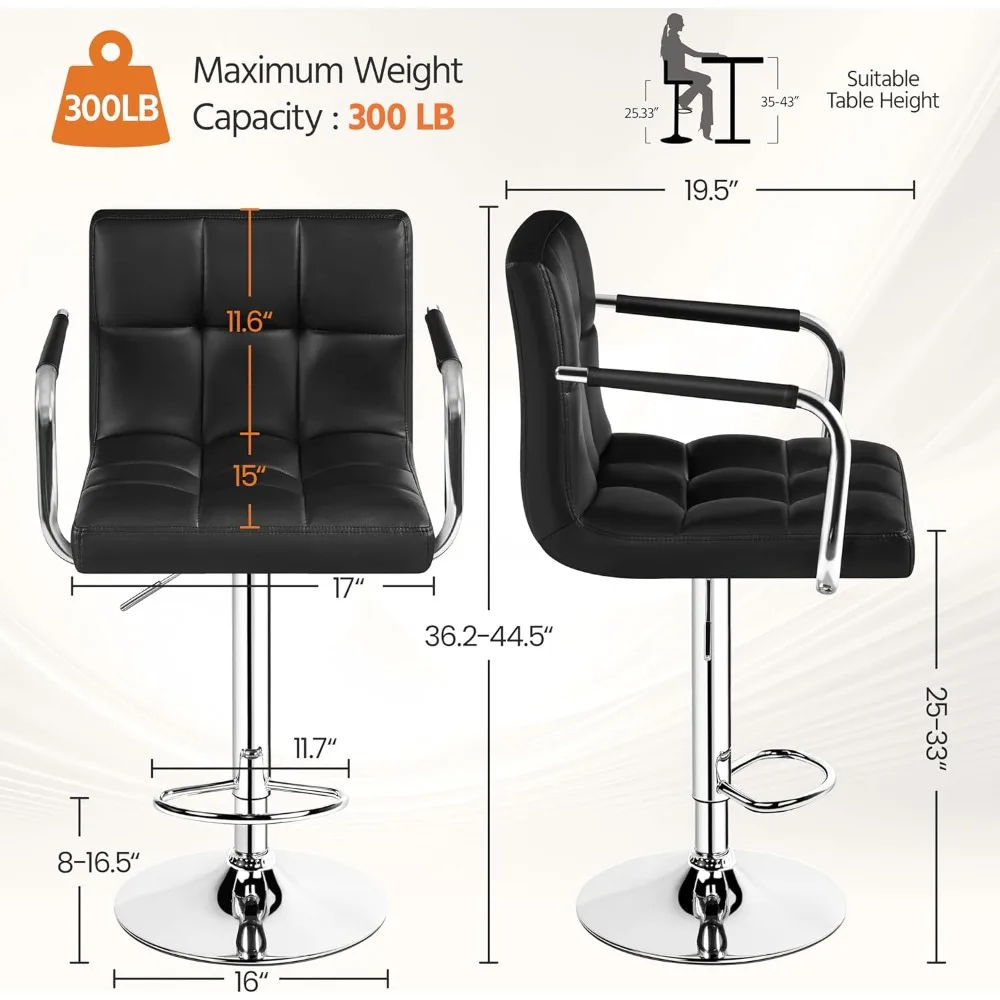 Bar Stools Set of 2, PU Leather Adjustable Swivel Barstools, Hydraulic Kitchen Counter Height Bar Chairs w/Armrest and Back
