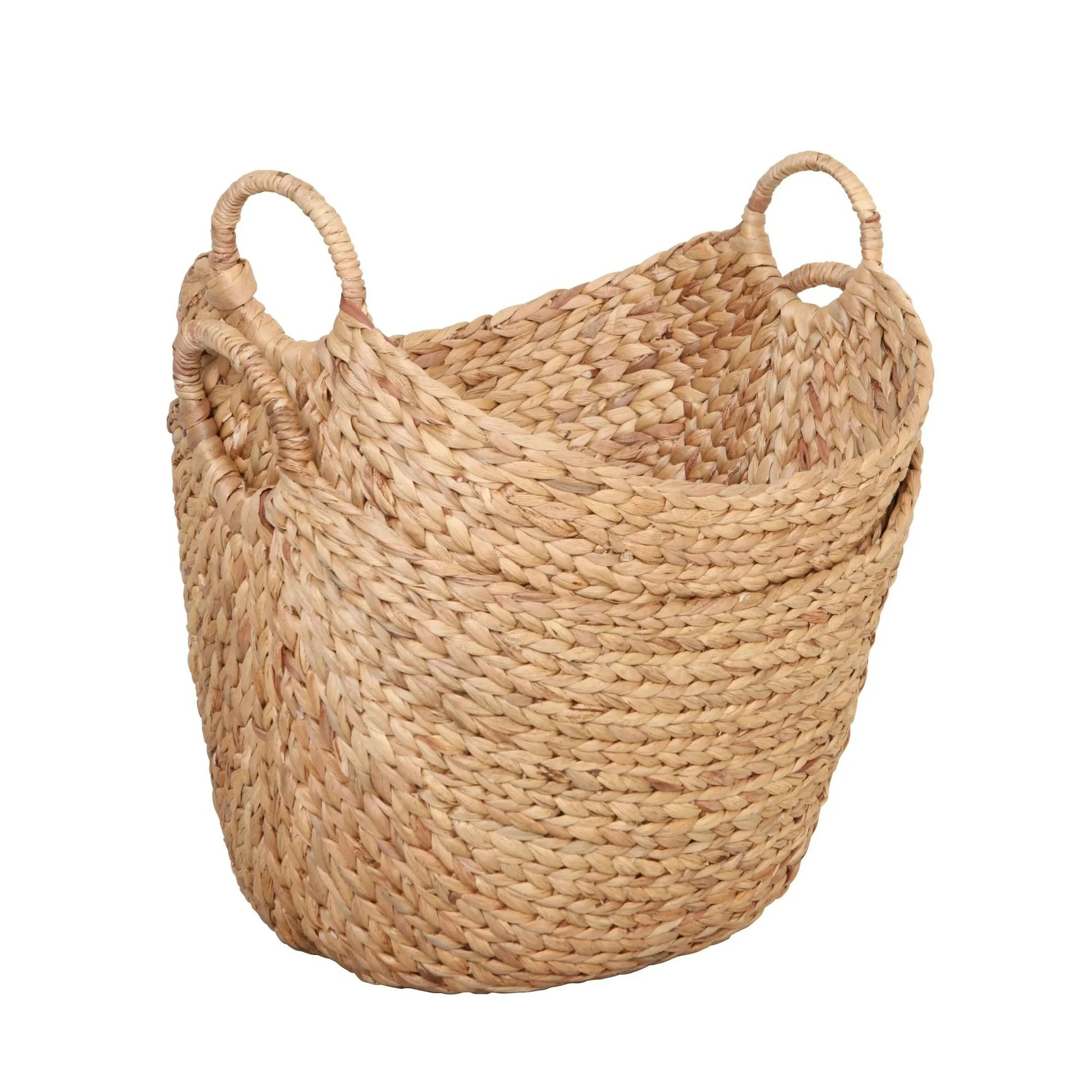 Its water hyacinth round rope handles make for easy lifting and will help organize items such as towels, pillows, toys, books, magazines, and more!