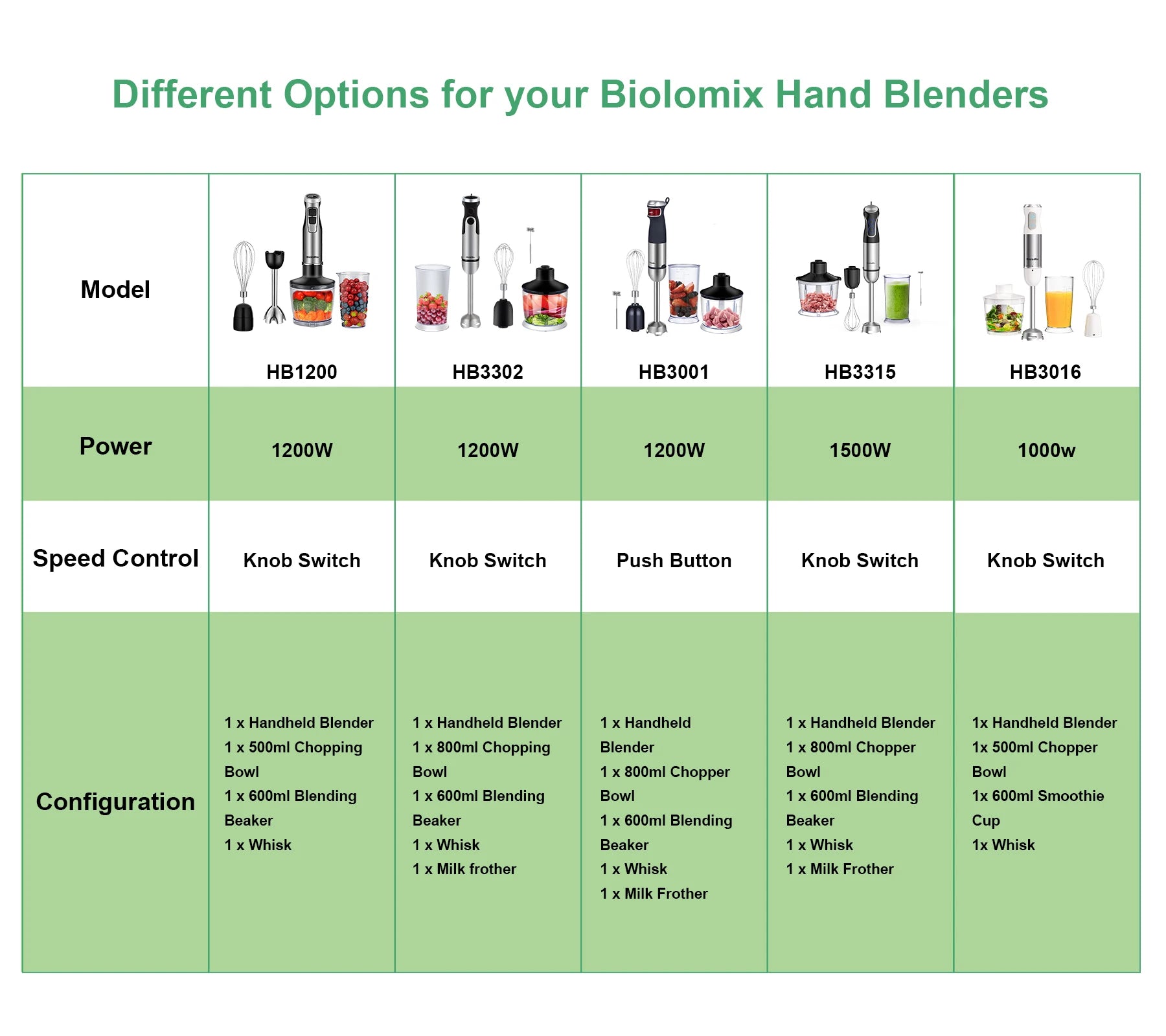 BioloMix Immersion Hand Blender, 1200W 4-in-1 6-Speed Stick Blender with 500ml Food Grinder, 600ml Container,Egg Whisk for Puree Infant Food, Smoothies, Sauces and Soups
