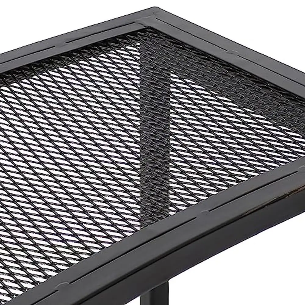 Black Metal Mesh Fire Pit Bench Set of 2 Curved Design Outdoor Campfire Seating Lightweight Alloy Construction 23"x13"x16