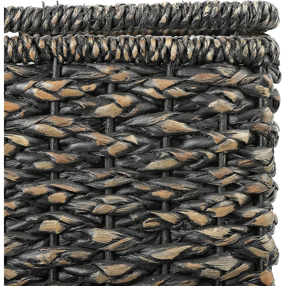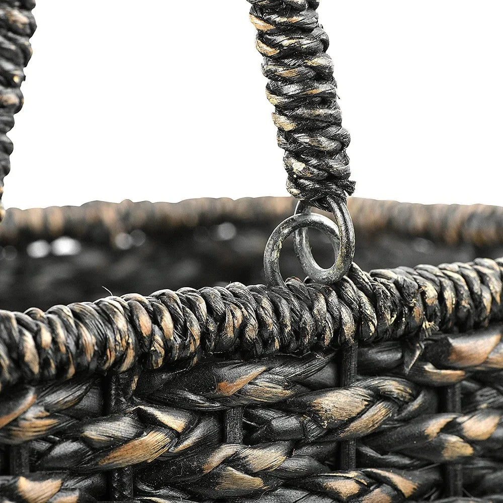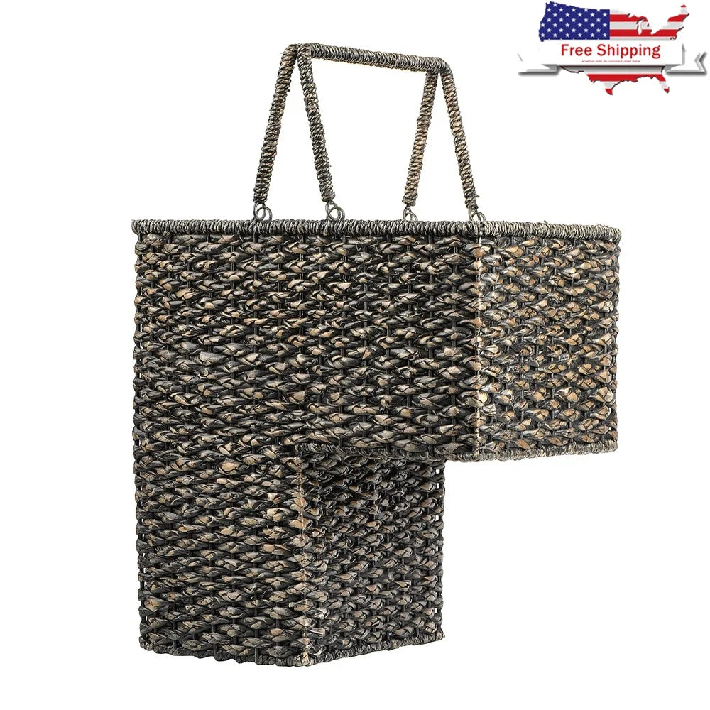 Black Rattan Stair Storage Basket with Handles Organizing Items Easy Carrying Utility Basket Decorative Home Storage Solution