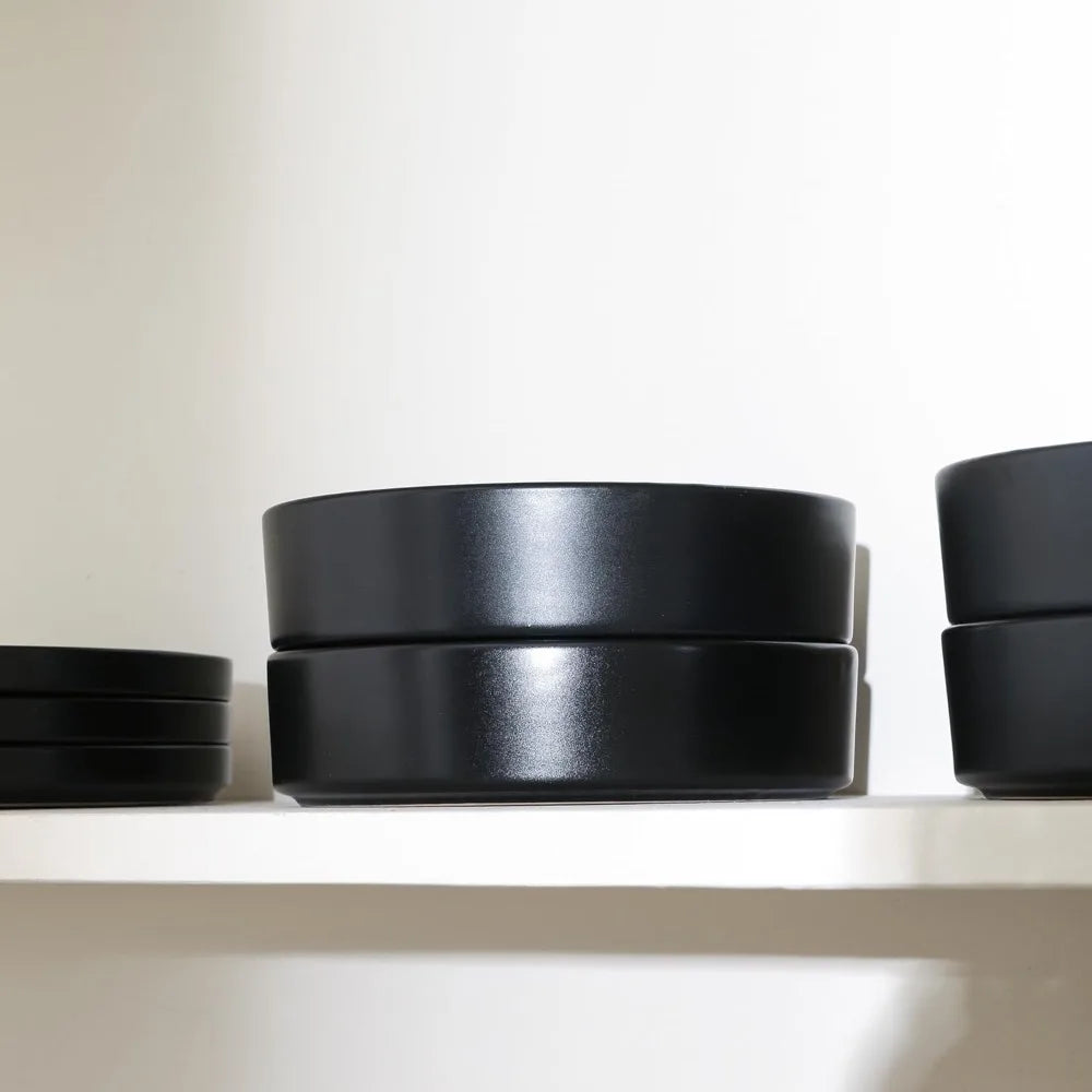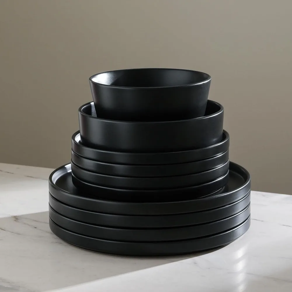 This Celina 16-piece stoneware dinnerware set is designed to serve four people, making it perfect for family meals and hosting guests. It includes four 10.25-inch dinner plates, four 7.5-inch salad plates, four 5.63-inch cereal bowls, and four 7-inch pasta bowls. The dinnerware is both dishwasher and microwave safe, which is ideal for everyday use and easy cleaning. Made from high-quality stoneware, this set is durable and long-lasting, ensuring convenience with its microwave and dishwasher compatibility. The versatile design of this set makes it suitable for casual and formal dining occasions, enhancing any table setting. The dinnerware set comes in elegant color options of grey matte and black matte, adding a modern touch to any dining decor.