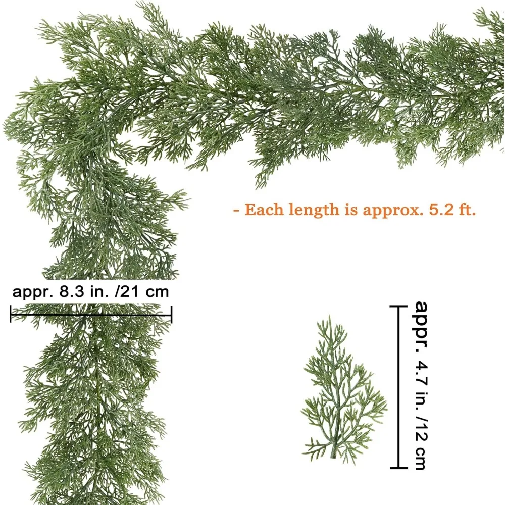 Christmas Artificial Cedar Pine Greenery - 5.2 Ft Cypress Garland for Home Holiday Decor Seasonal Wreath Mantel Banister Dinner