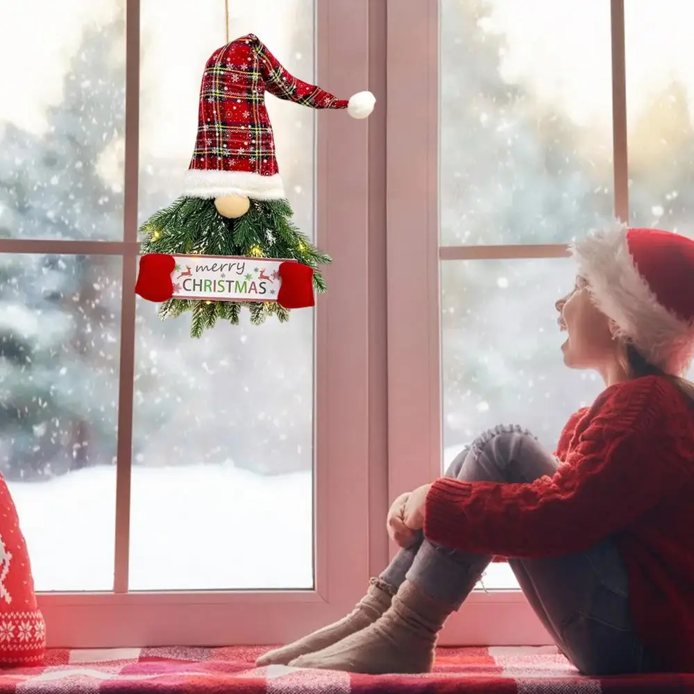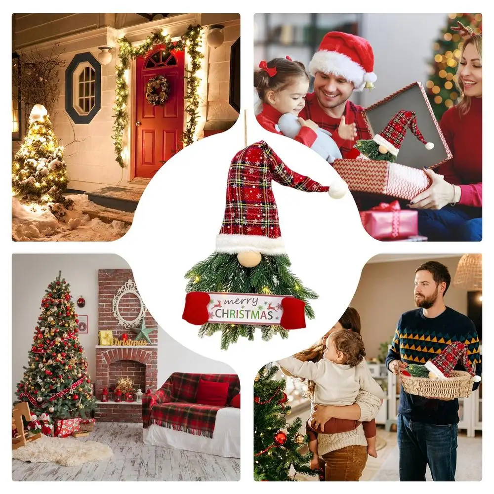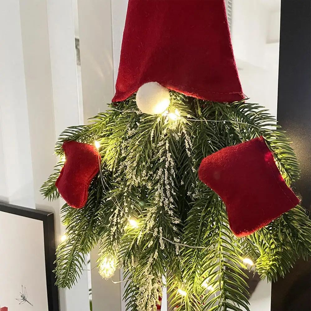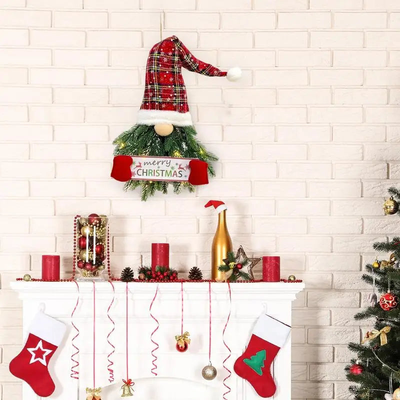 Christmas Door Wreath Gnome Wreath Pine Needle Christmas Wall Door Hanger With LED Lights Cute Faceless Doll Dwarf Pendant xmas