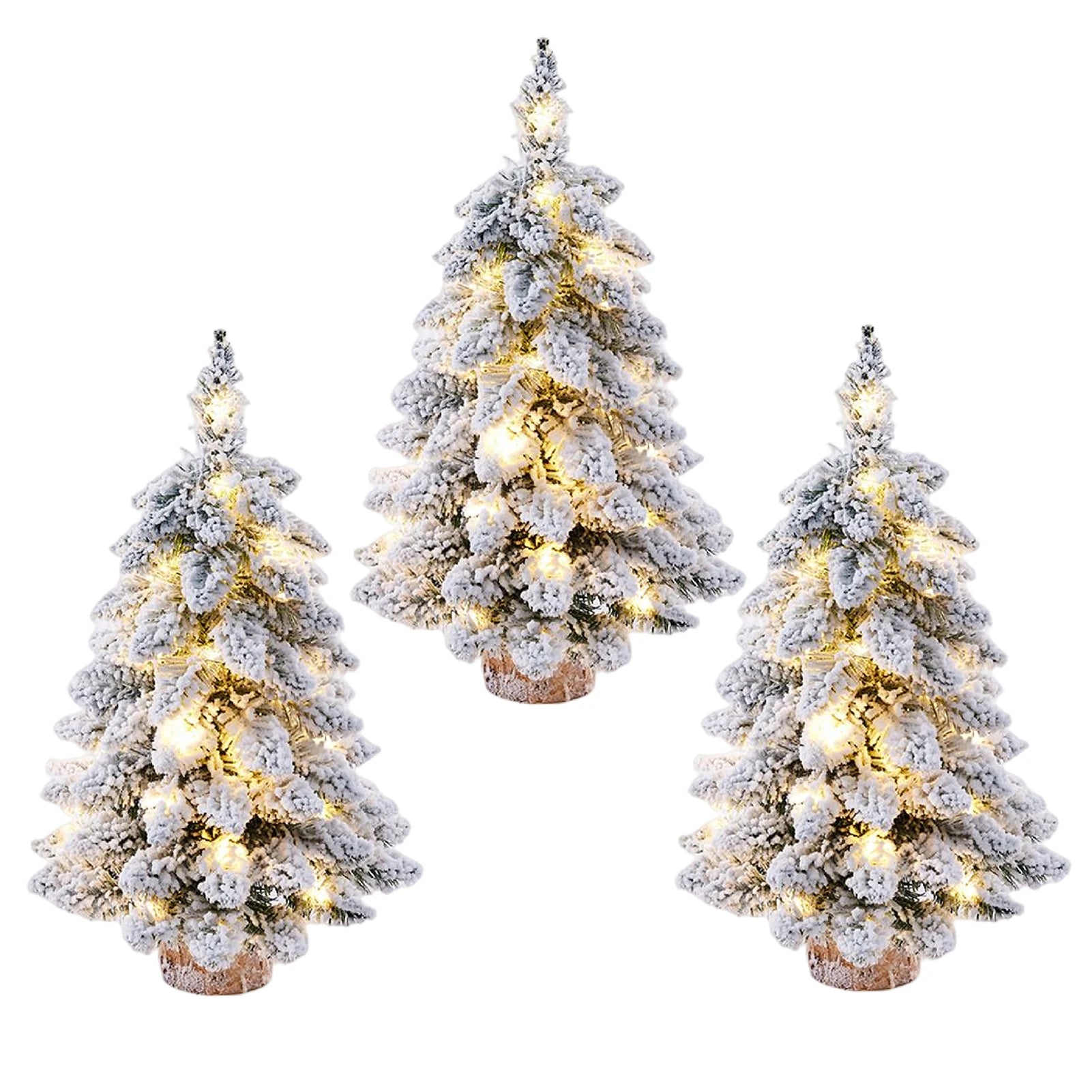 Christmas Flocked Mini Tree With Lights Snowflake Decorations Sturdy Wooden Base For Home Office Desk Winter Holiday Decor