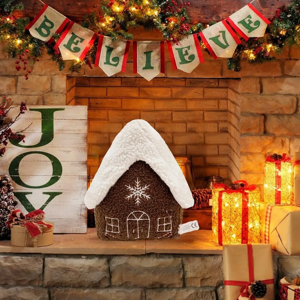Christmas Gingerbread House Plush Toys Pillow Snow House Xmas Gingerbread House Cushion Christmas Tree Decor Doll Plushie