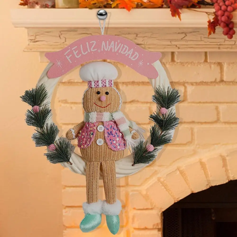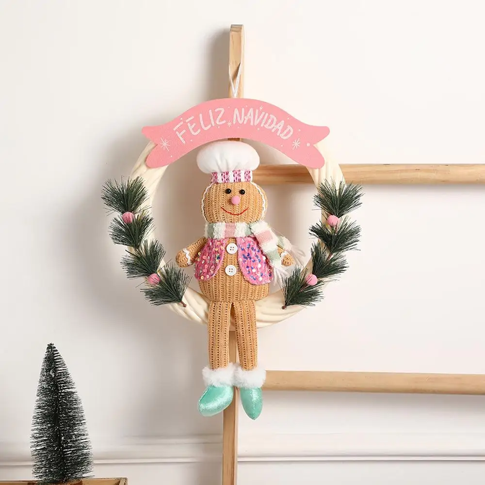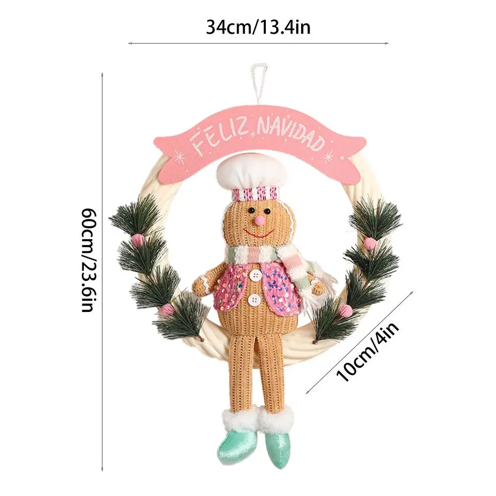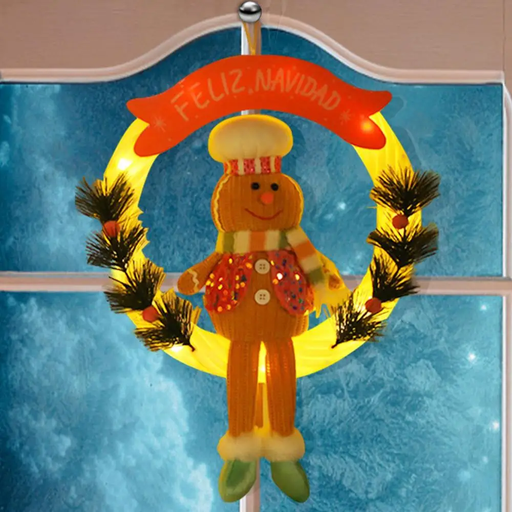 Christmas Gingerbread Man Doll Wreath Lighted Christmas Hangable Ornaments Gingerbread Welcome Garlands for Decorative Door