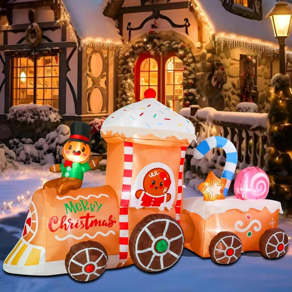Christmas Inflatables Outdoor Decoration Inflatable Train with Gingerbread Candy Cane Giant Outdoor Indoor Blow Up LED Lighted U