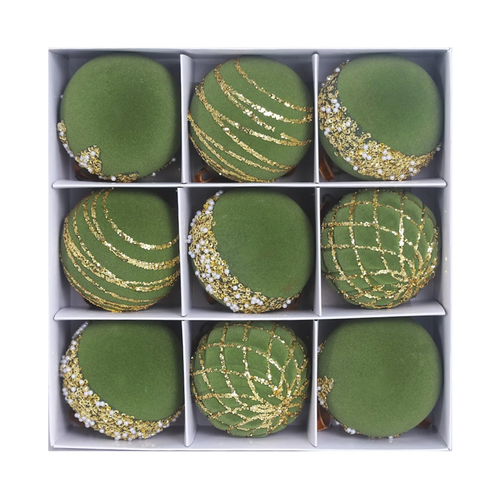Lamp-painted Plastic Christmas Tree Decorative Hanging Ornaments, 8cm 9pcs Flocked Christmas Ball Set